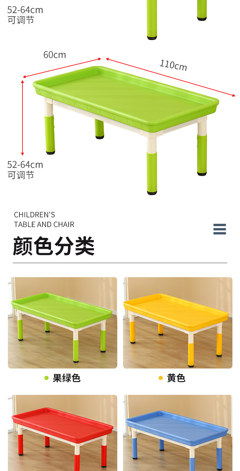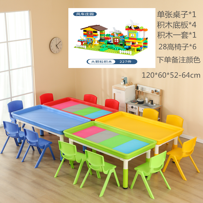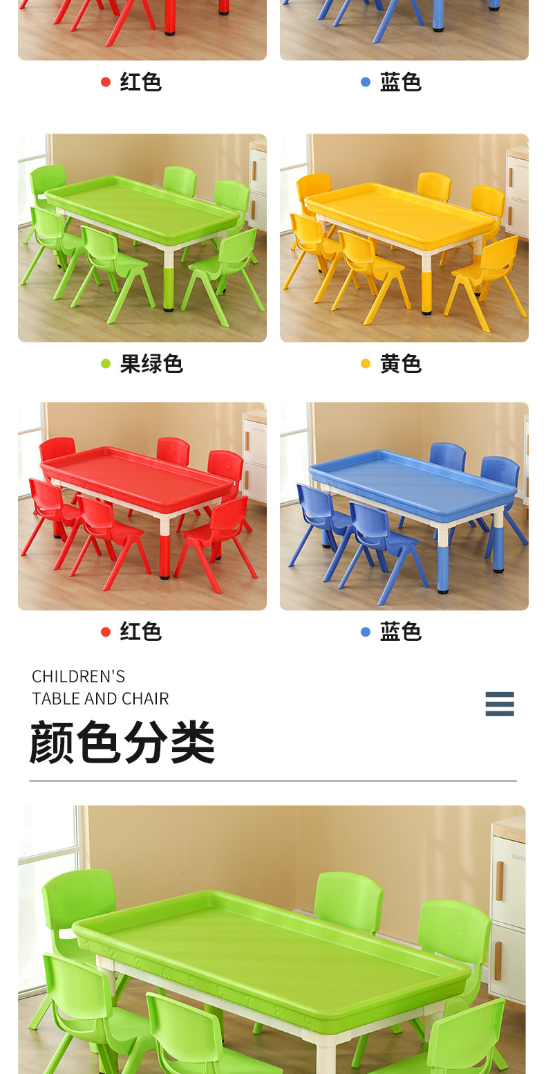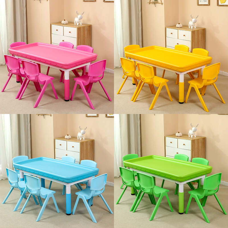 • 마카롱 리프팅 직사각형 모래 테이블, 테이블 1개, 의자 6개, 120*60cm, 색상 비고