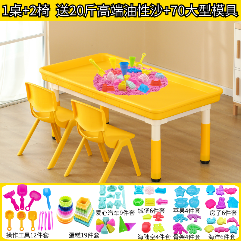 • 노란색 깊어지는 둥지 모래 테이블(의자 2개 포함) + 모래 무료 모델 10kg개 120*60cm