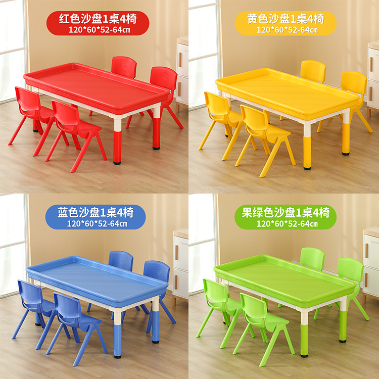 • 마카롱 리프팅 직사각형 모래 테이블, 테이블 1개, 의자 4개, 120*60cm, 색상 비고