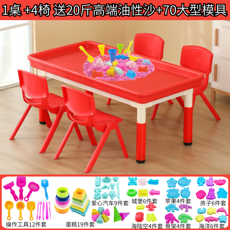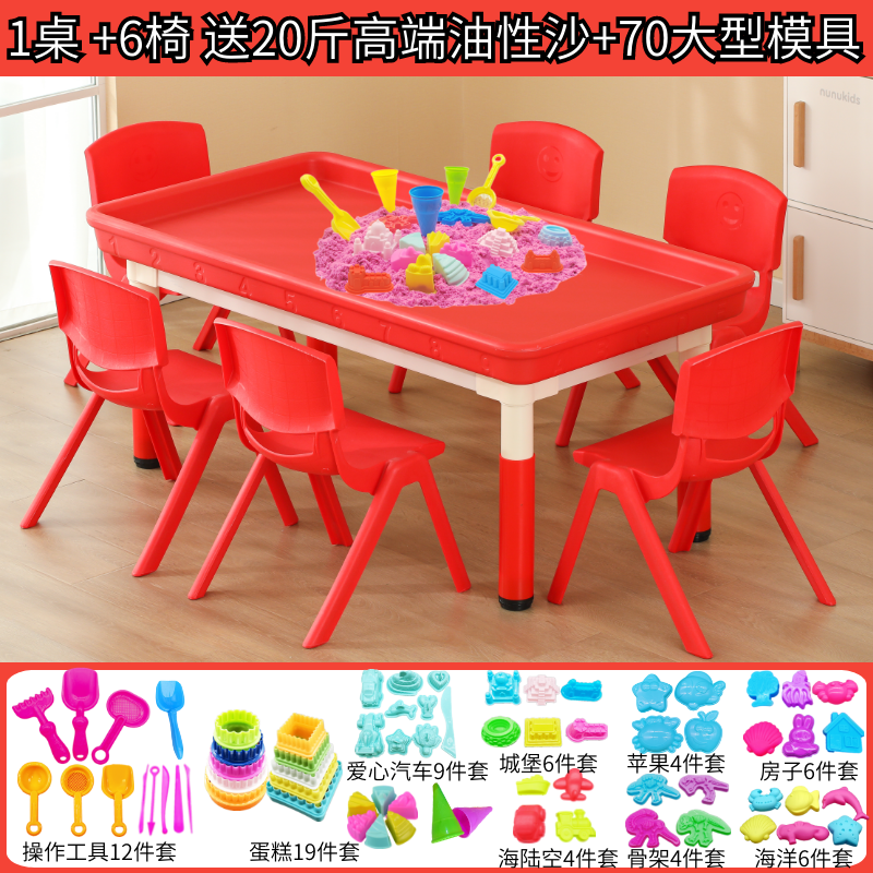 • 빨간색 깊은 둥지 모래 테이블(의자 6개 포함) + 모래 무료 모델 10kg개 120*60cm