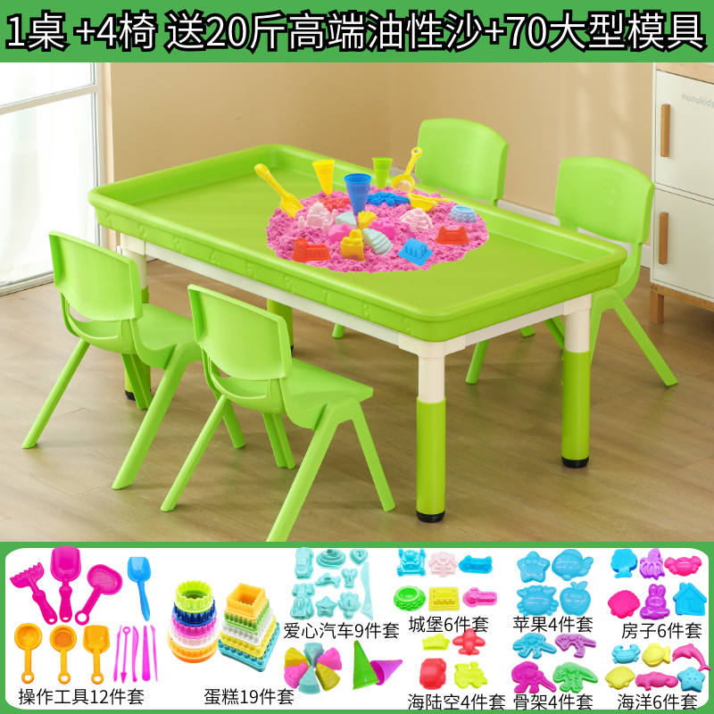 • 과일 녹색 깊은 둥지 모래 테이블(의자 6개 포함) + 모래 무료 모델 10kg개 120*60cm