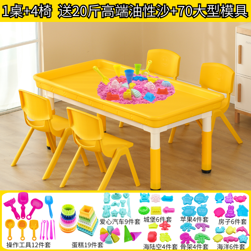 • 노란색 심화 둥지 모래 테이블(의자 4개 포함) + 모래 무료 모델 10kg개 120*60cm