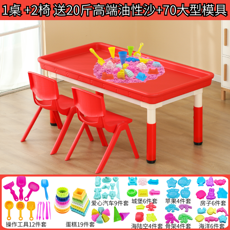 • 깊은 빨간색 둥지 모래 테이블(의자 2개 포함) + 모래 무료 모델 10kg개 120*60cm