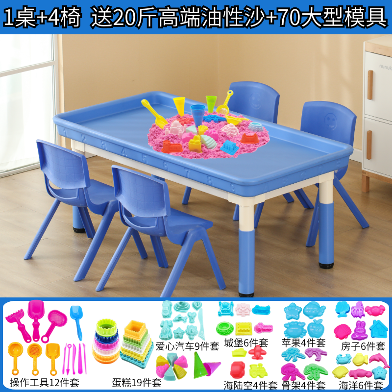 • 파란색 깊어지는 둥지 모래 테이블(의자 4개 포함) + 모래 배달 모델 10kg개 120*60cm