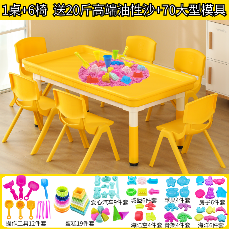 • 노란색 심화 둥지 모래 테이블(의자 6개 포함) + 모래 배달 모델 10kg개 120*60cm