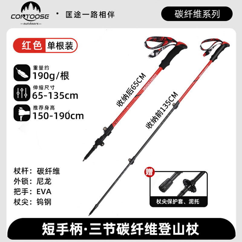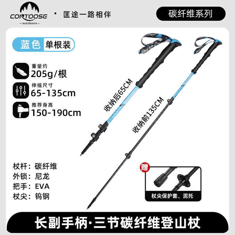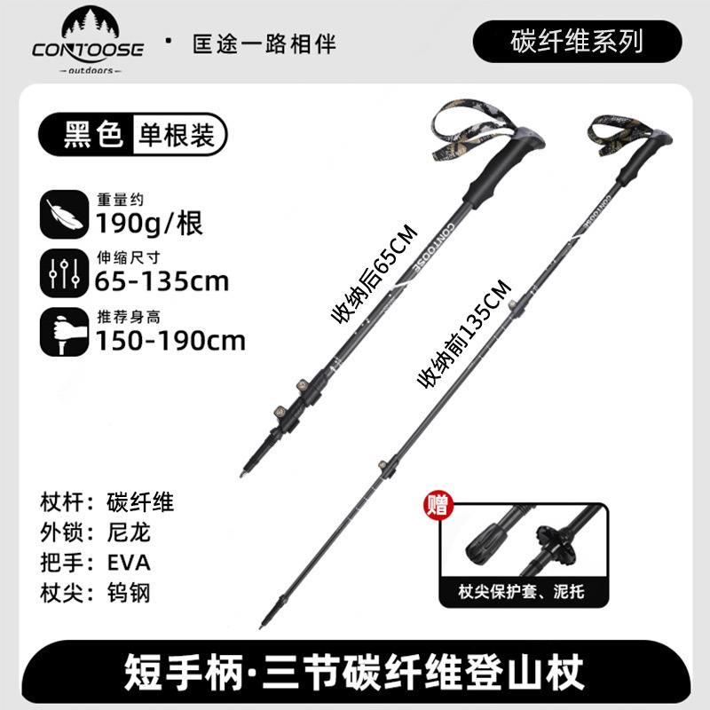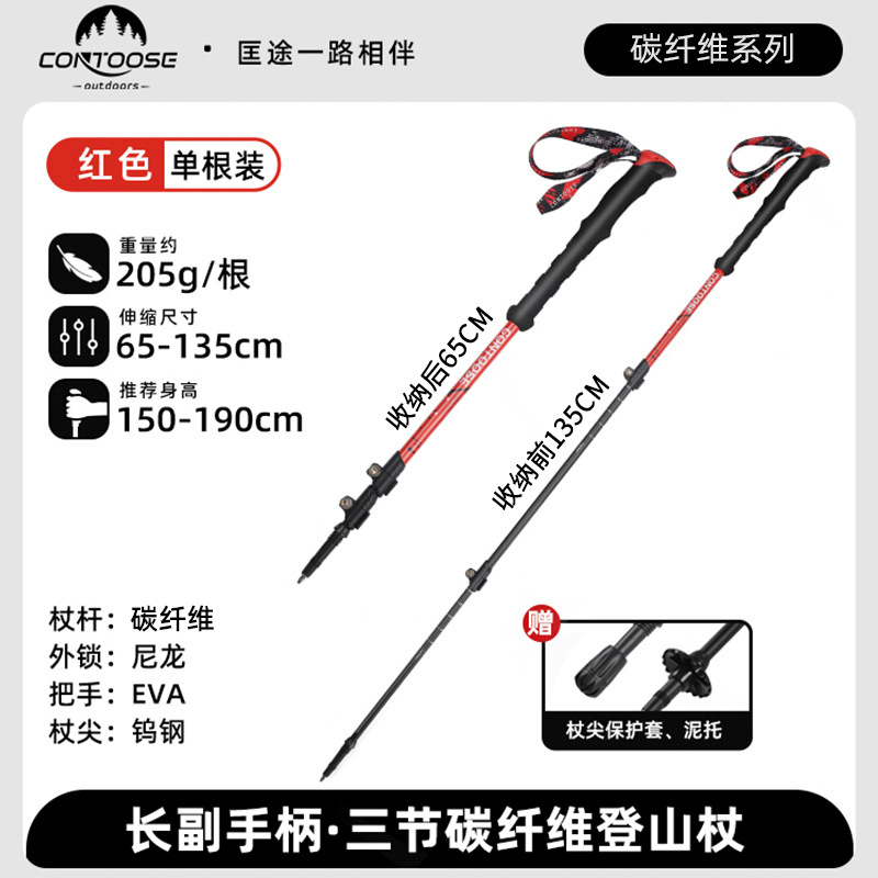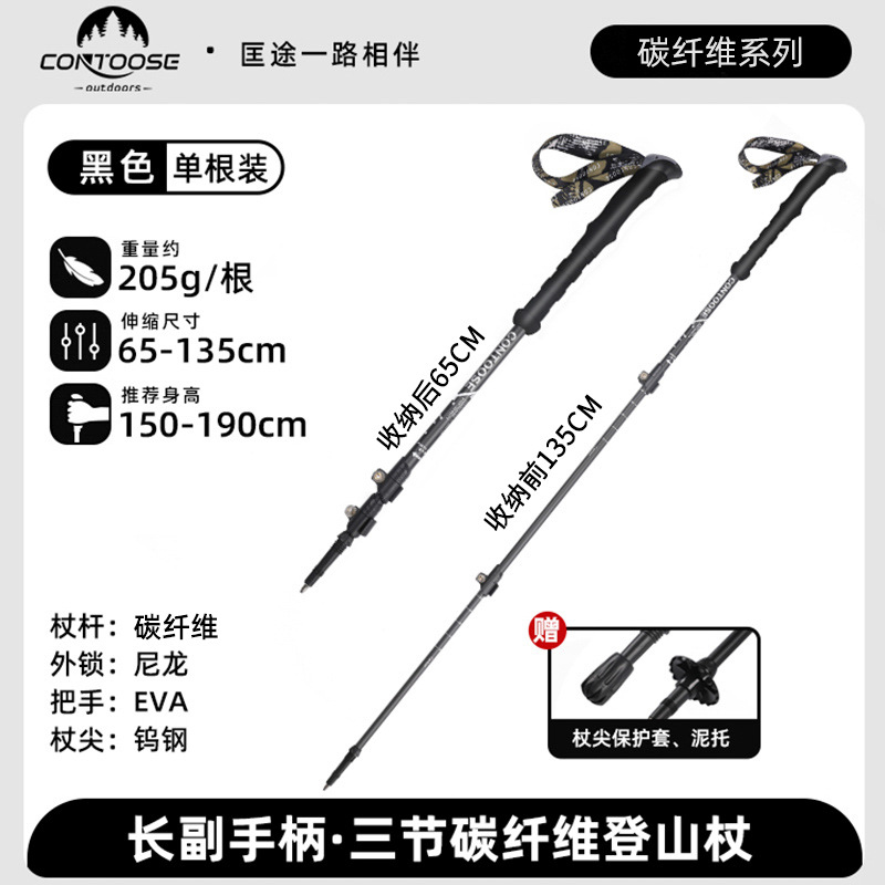 Kuangtu 야외용 탄소섬유 등산 스틱, 지팡이, 접이식 미끄럼 방지 전문 등산 및 하이킹 장비, 가볍고 휴대 가능
