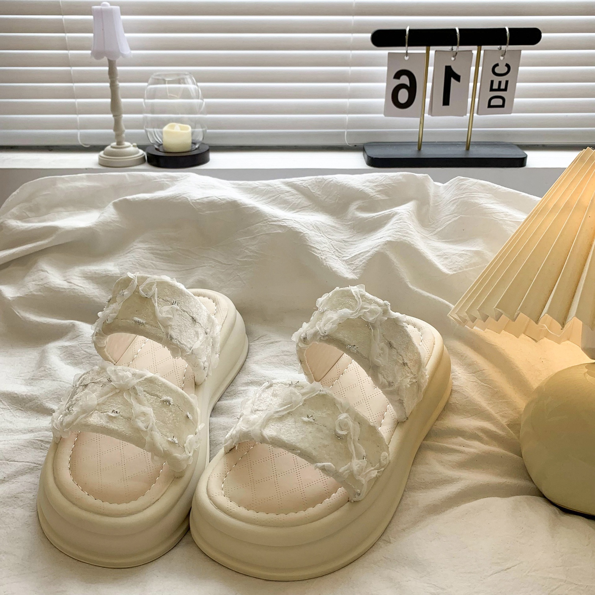 여름 아우터로 입기 좋은 여성용 페어리 스타일 슬리퍼 2025 신상 두꺼운 밑창 미끄럼 방지 스커트와 어울리는 비치 샌들