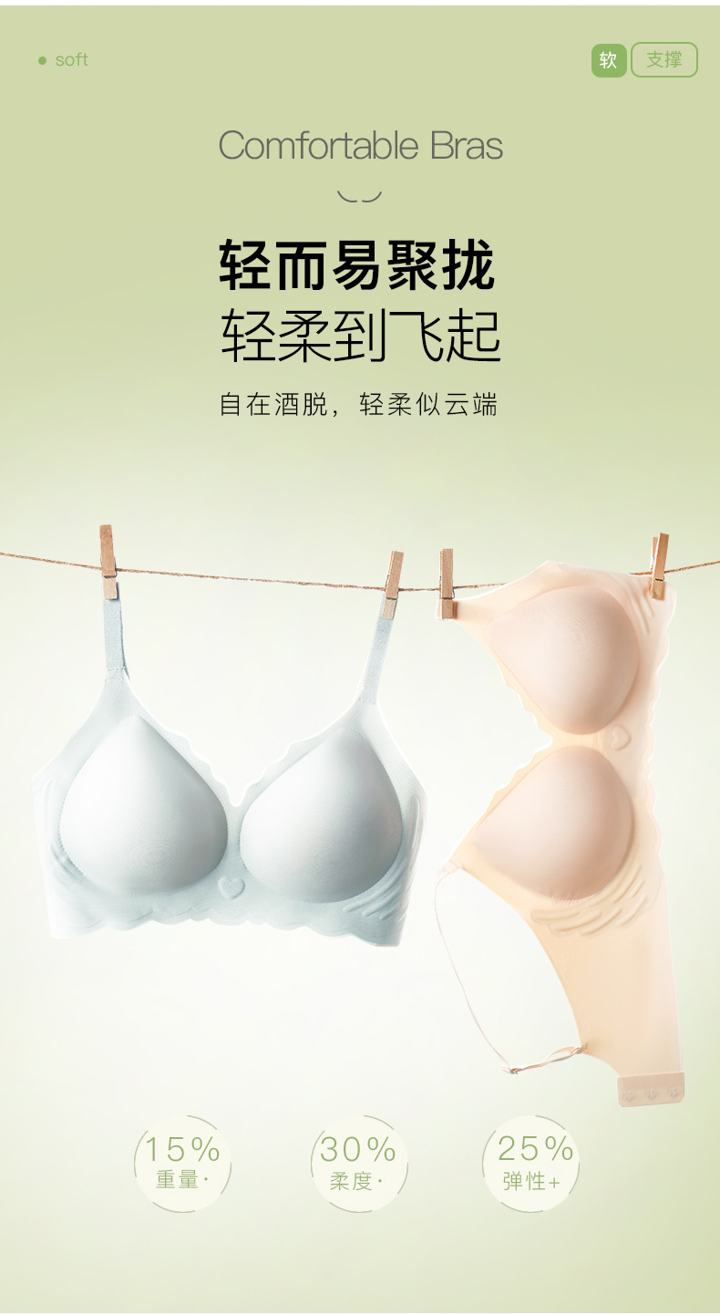 넓은 어깨끈, 심리스 브라, 하트투하트, 작은 가슴 푸쉬업, 편안한 스포츠 푸쉬업, 여름용 얇은 속옷 브라스토어 가기