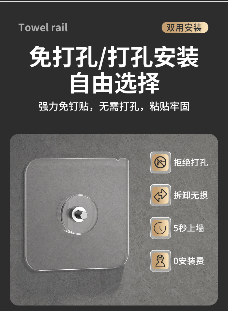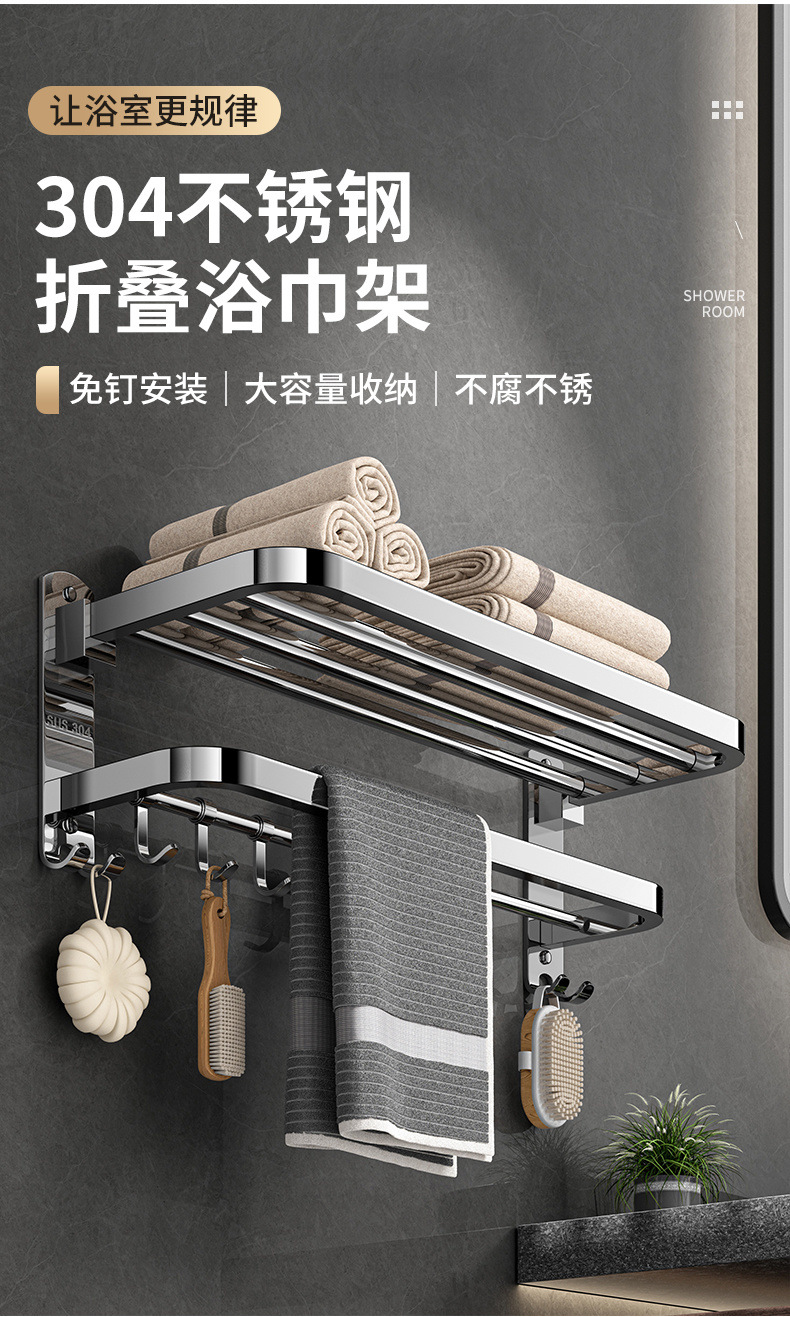 두꺼운 304 스테인레스 스틸 수건 걸이, 화장실 수건 걸이, 펀치없는 욕실 수건 걸이, 욕실 보관함