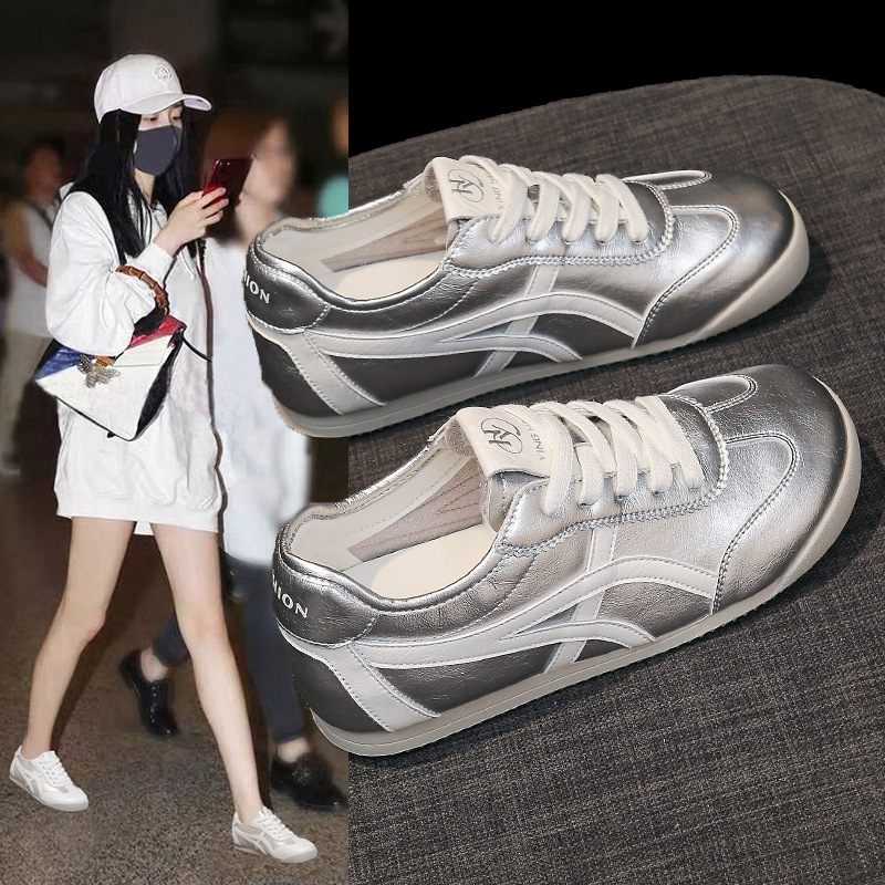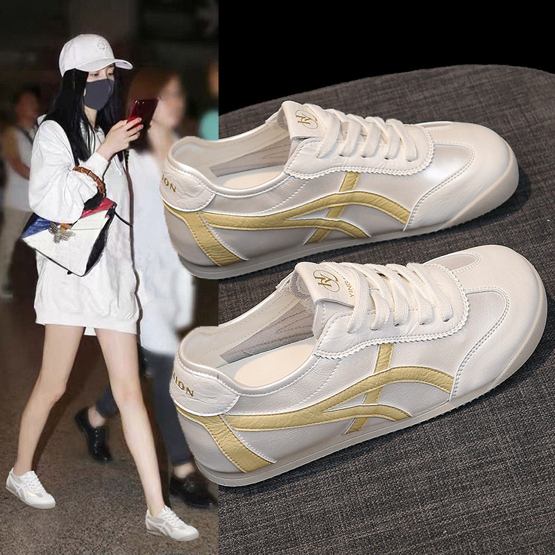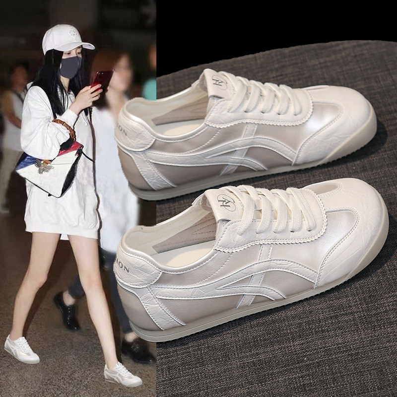 정품 가죽 육군 훈련 신발, 여름 얇은 통기성 부드러운 밑창, 발이 피곤하지 않은 여성 신발, 플랫 바닥 포레스트 검프 신발, 캐주얼 스포츠 흰색 신발스토어 가기