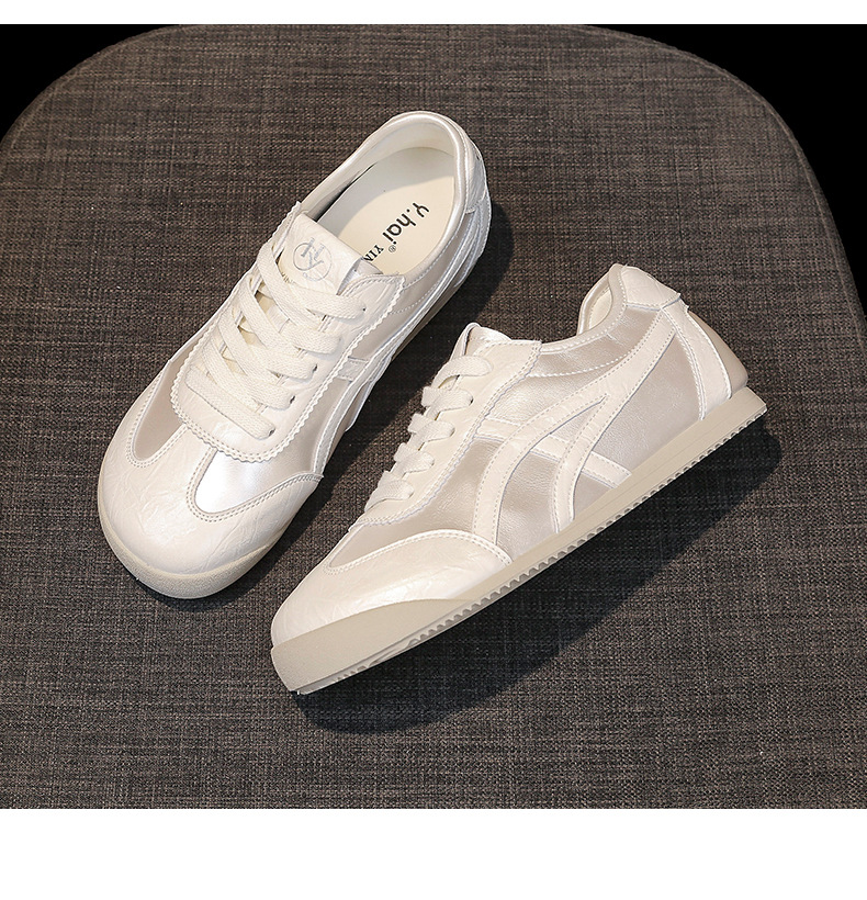 정품 가죽 육군 훈련 신발, 여름 얇은 통기성 부드러운 밑창, 발이 피곤하지 않은 여성 신발, 플랫 바닥 포레스트 검프 신발, 캐주얼 스포츠 흰색 신발