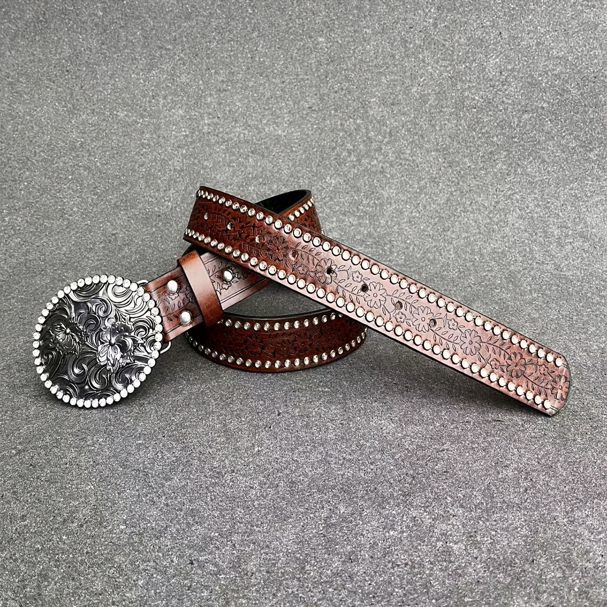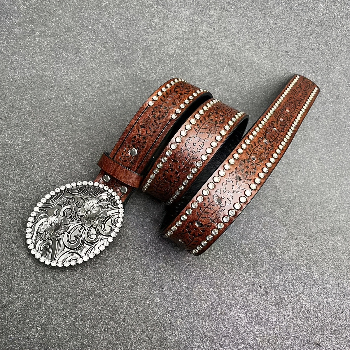 유럽과 미국 여성의 데님 벨트, 헤비 드럼 라인스톤 리벳, 복고풍 캐주얼 핫걸 개성 패션 다용도 벨트 재고 있음스토어 가기