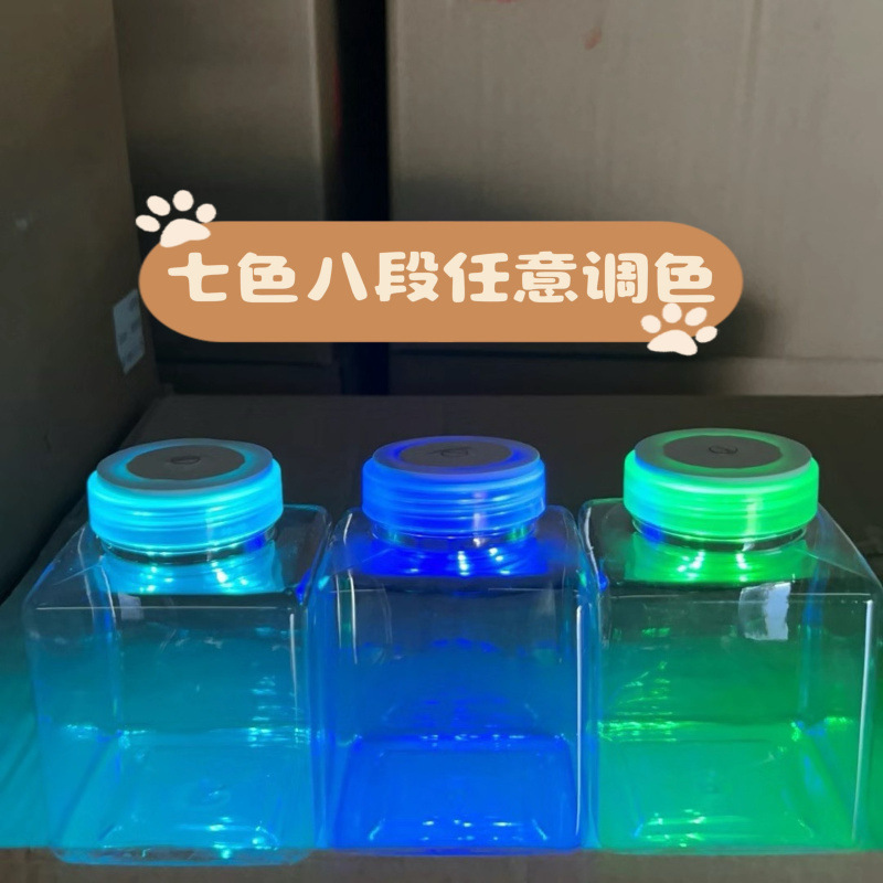 정사각형 스타일 스톨 특수 버킷 병 500ml 투명 미니 생태 마이크로 풍경 탱크 발광 조명 해파리 수족관스토어 가기