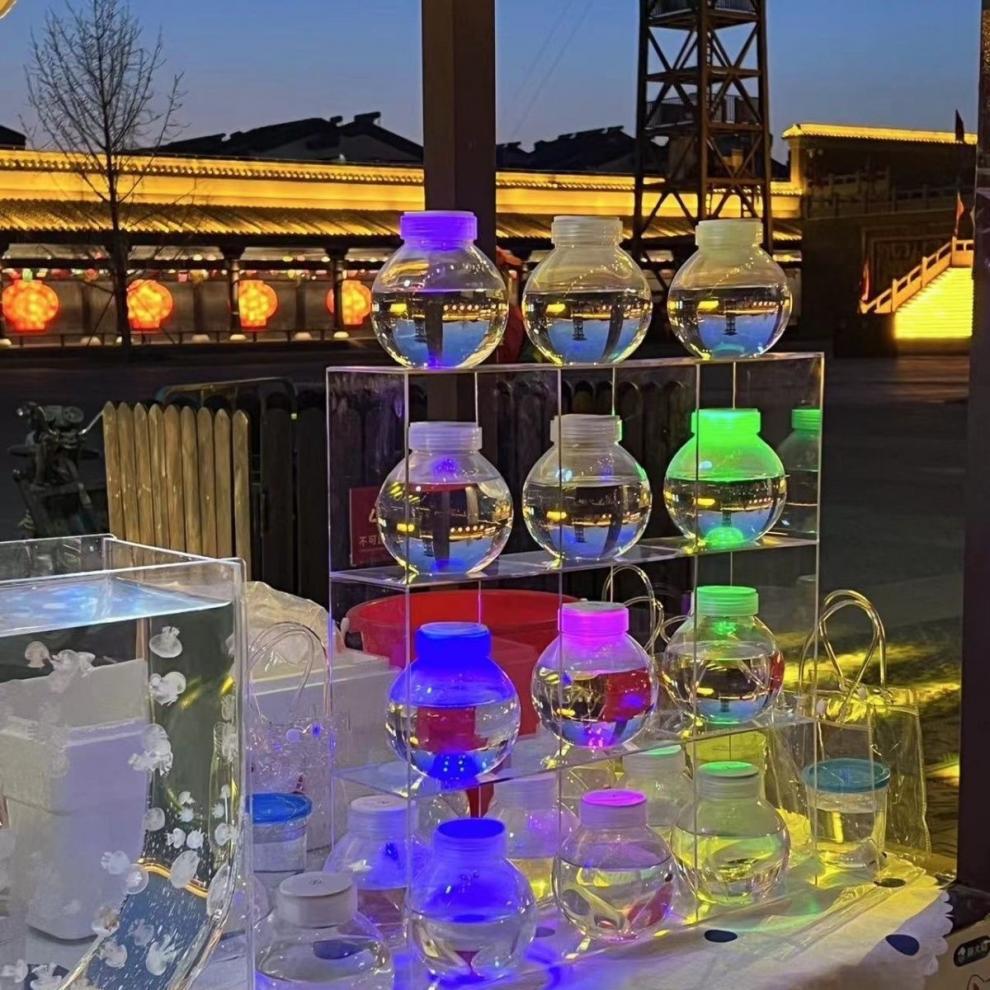 정사각형 스타일 스톨 특수 버킷 병 500ml 투명 미니 생태 마이크로 풍경 탱크 발광 조명 해파리 수족관