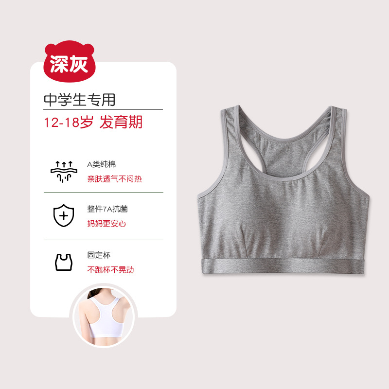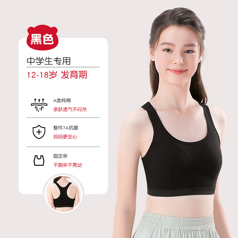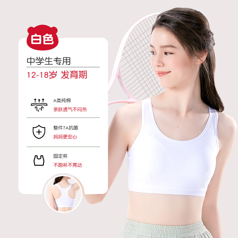 여아 스포츠 브라, 중학생, 고등학생, 발달기, I자형 백 여아 브라, 가슴 패드가 있는 순면 여아 브라