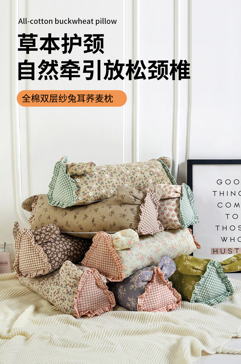 Douyin의 동일한 스타일 토끼 메밀 베개 가정용 성인 통기성 베개 목 보호 수면 자스민 베개 코어는 탈부착 및 세척 가능스토어 가기