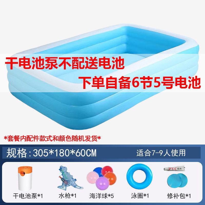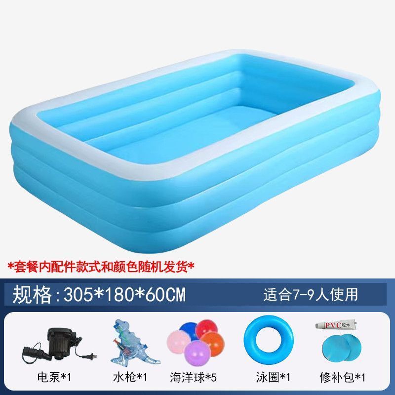 • 300cm 수영장 - 심플한 파란색과 흰색 3겹 두꺼운 배터리 야외 패키지 [야외 물놀이 플래시 충전]