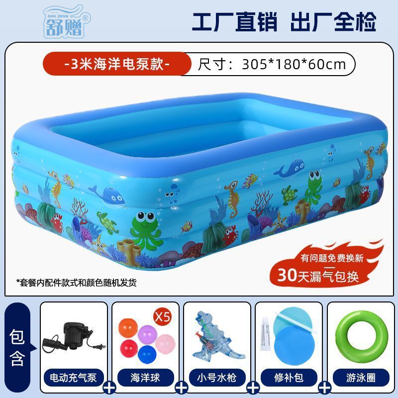 • 300cm 수영장 - 해양 프린트 3겹 농축 - 전동 펌프 물놀이 패키지 [급속 팽창]