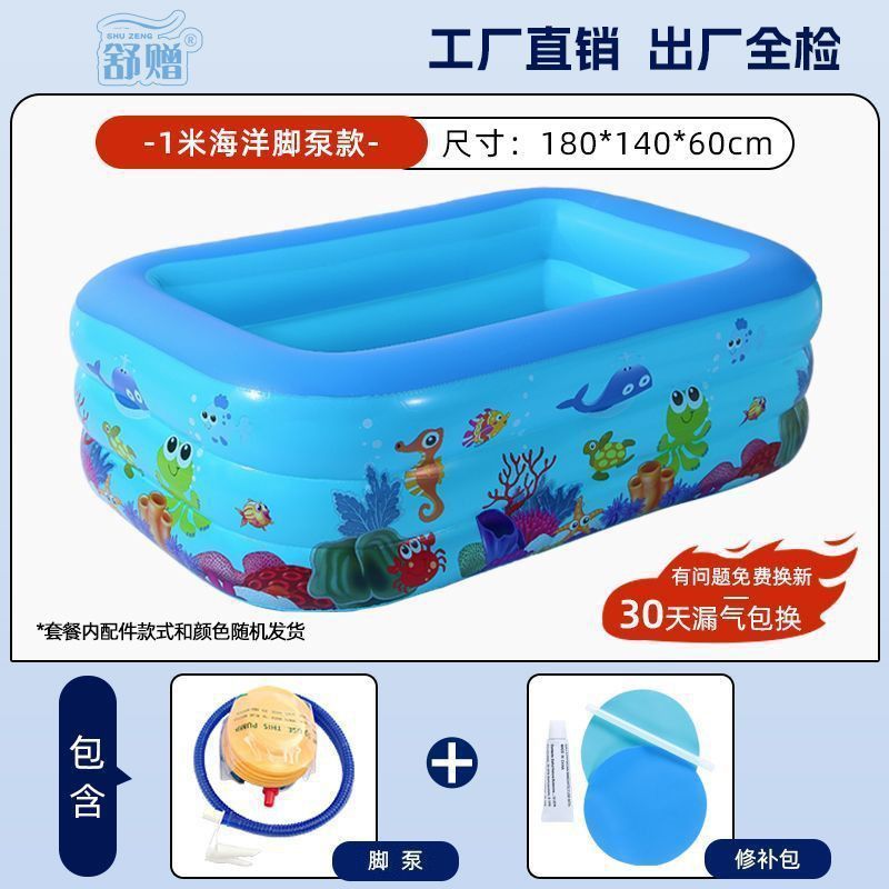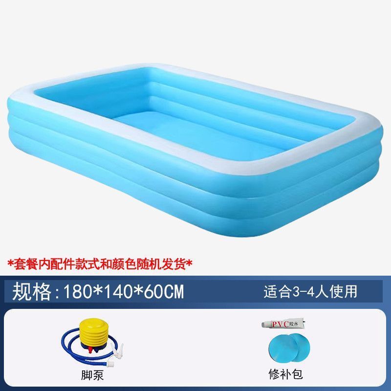 • 180cm 수영장 - 심플한 파란색과 흰색 3겹 두꺼운 발 펌프 특별 패키지 [피곤할 때 팽창하고 천천히 팽창]