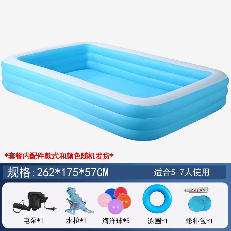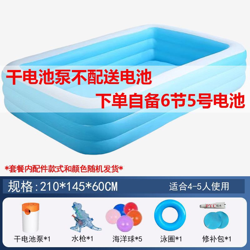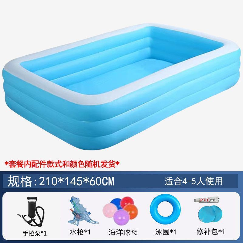 • 210cm 수영장 - 심플한 파란색과 흰색 3겹 두꺼운 배터리 야외 패키지 [야외 물놀이 플래시 충전]