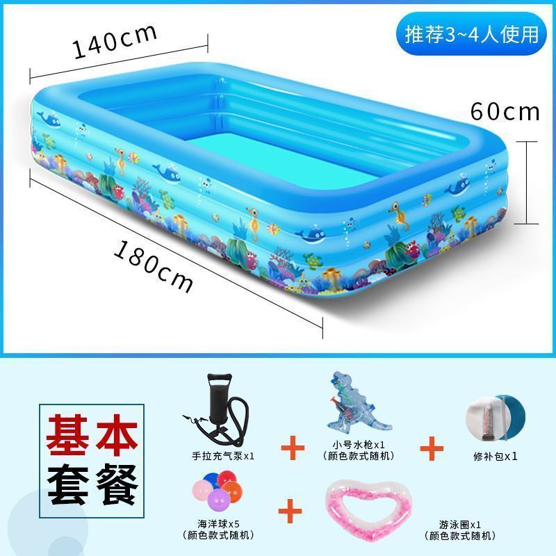 • 180cm 수영장 - 오션 프린트 3겹 농축 - 전동 펌프 워터 플레이 패키지 [급속 팽창]