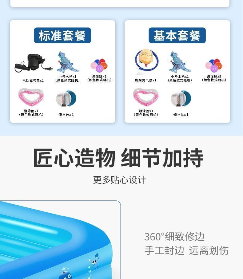 • 180cm 수영장 - 심플한 파란색과 흰색 3겹 두꺼운 전동 펌프 물놀이 패키지 [급속 팽창식]