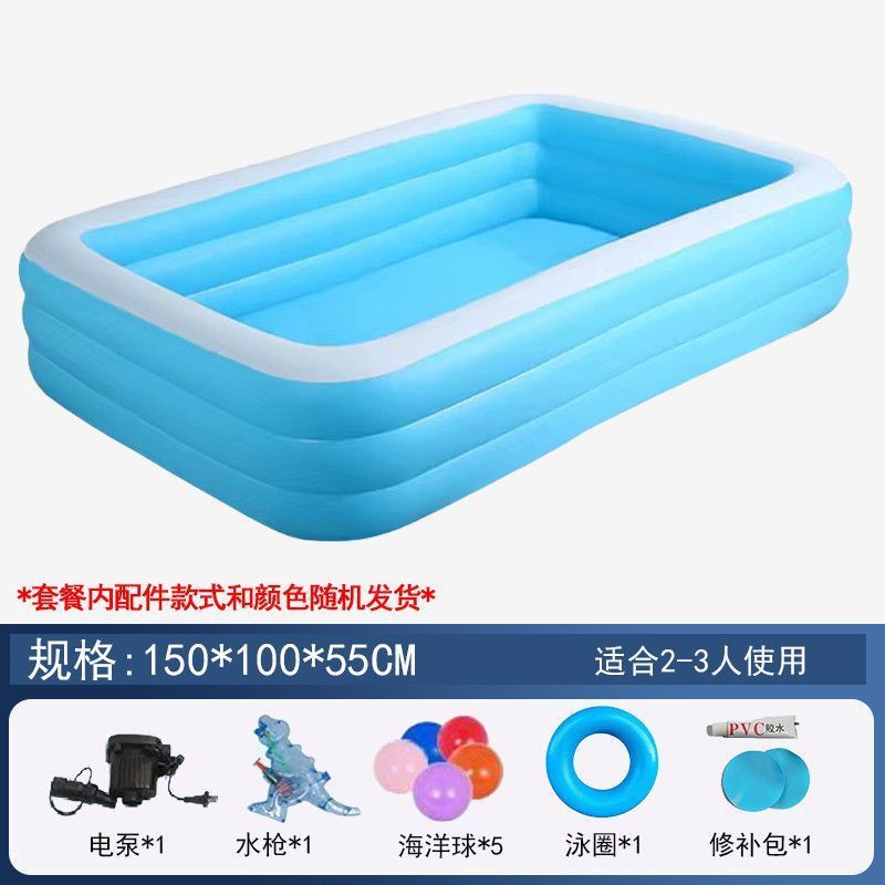 • 150cm 수영장 - 파란색과 흰색의 심플한 3겹 두꺼운 전동 펌프 물놀이 패키지 [급속 팽창식]