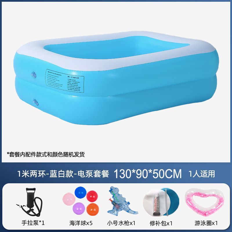 • 130cm 수영장 - 심플한 파란색과 흰색 이중층 농축 - 전기 펌프 물놀이 패키지 [급속 팽창식]