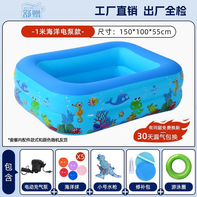 • 150cm 수영장 - 해양 프린트 3겹 농축 - 전동 펌프 물놀이 패키지 [급속 팽창식]
