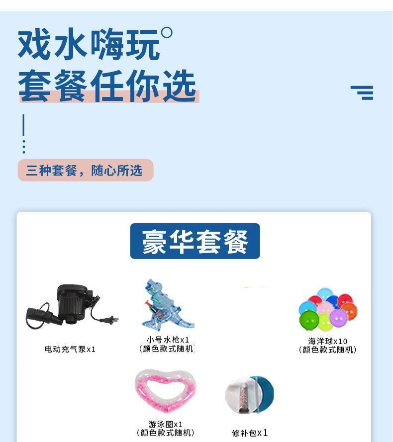 • 260cm 수영장 - 심플한 파란색과 흰색 3겹 두꺼운 전동 펌프 물놀이 패키지 [급속 팽창식]