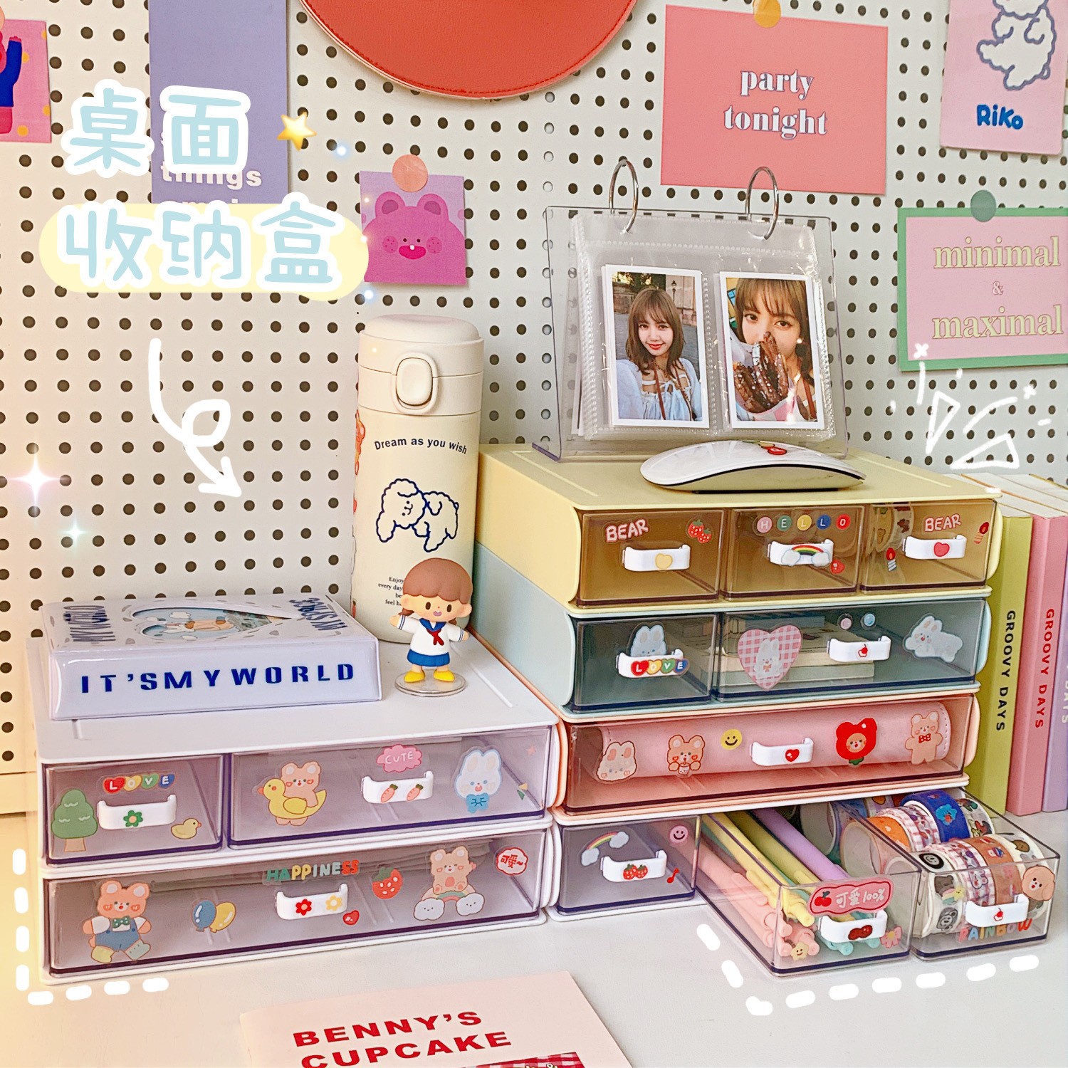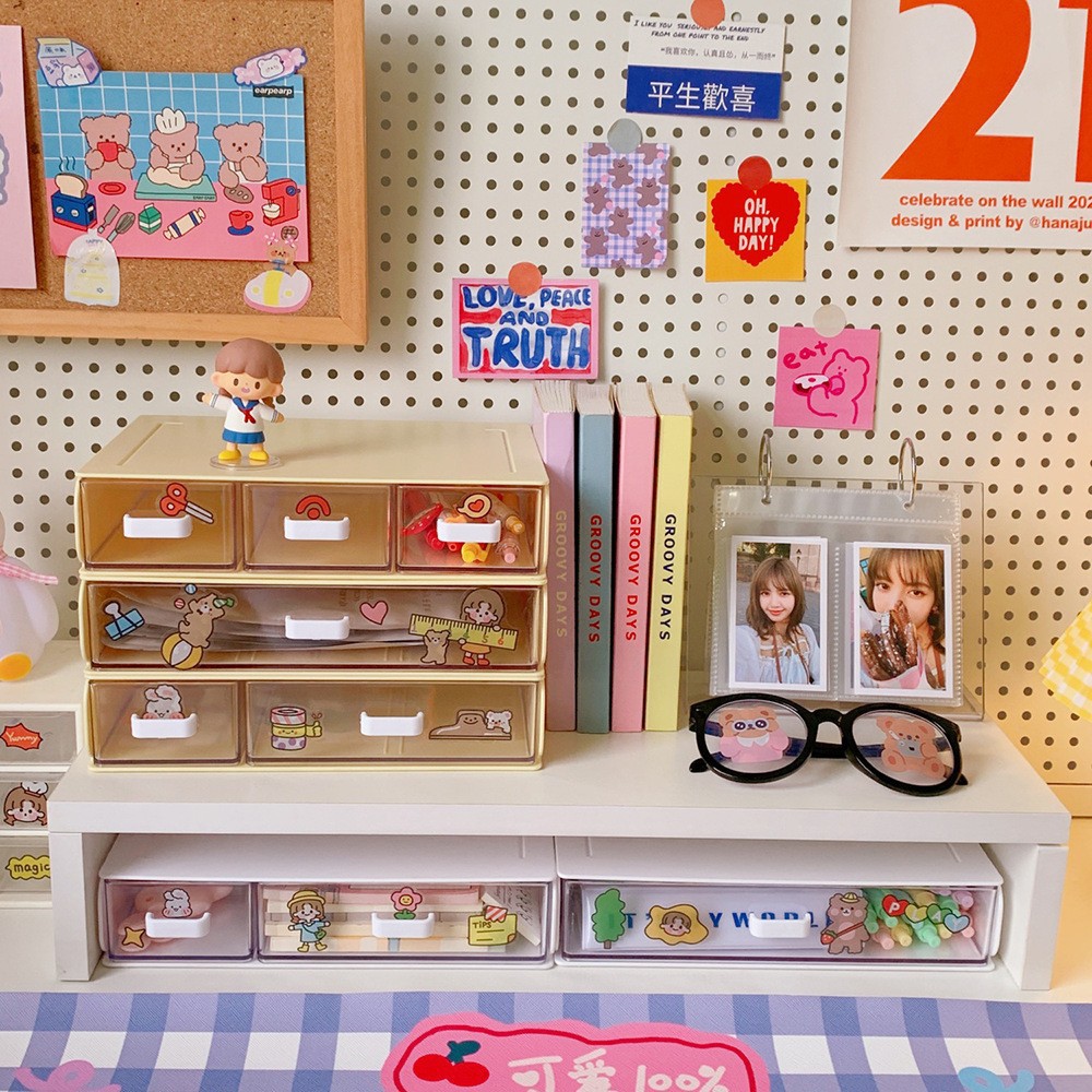 여자를 위한 한국식 유럽식 심플한 데스크탑 수납함, 여러 칸이 있는 서랍형 소품, 고무줄, 머리끈, 다기능스토어 가기