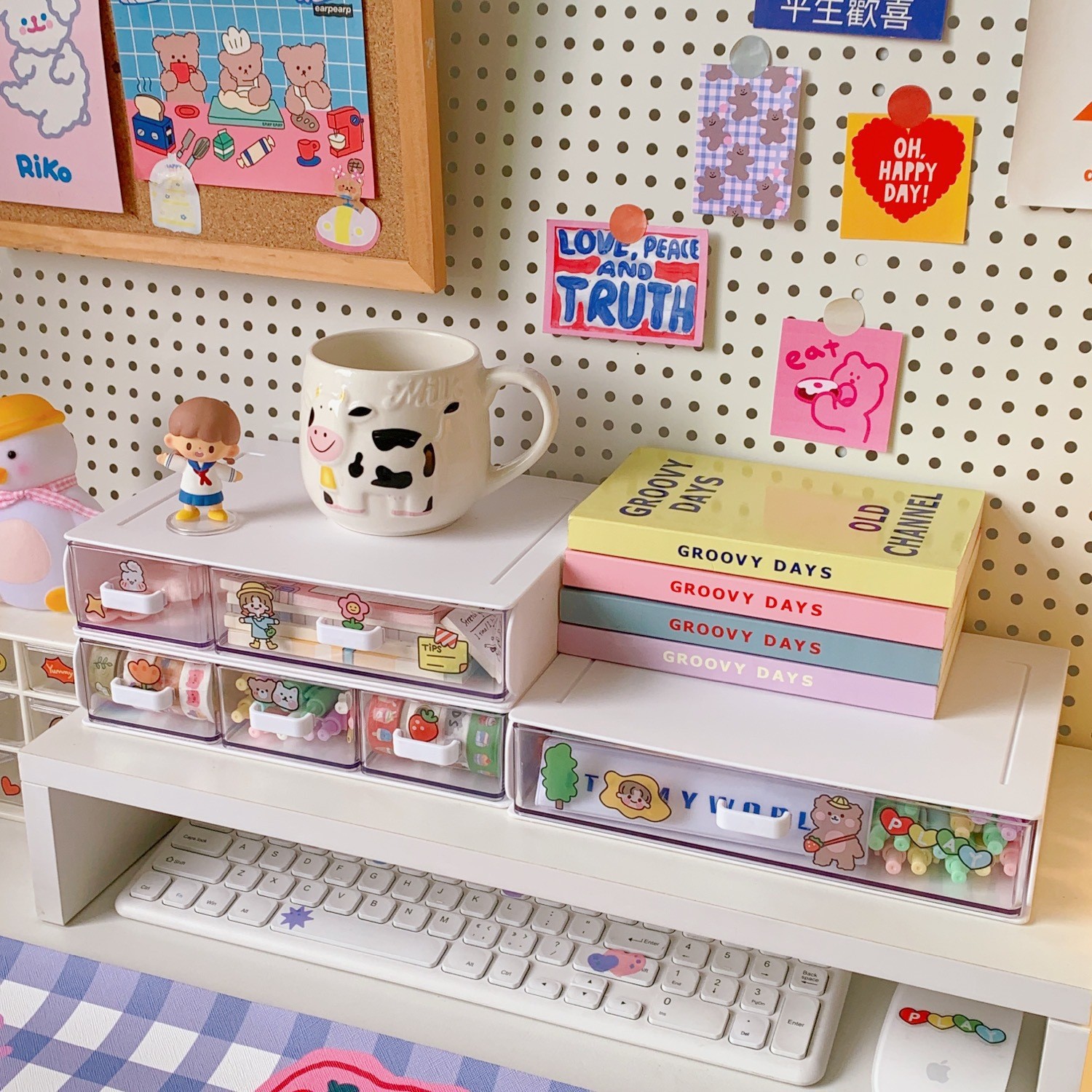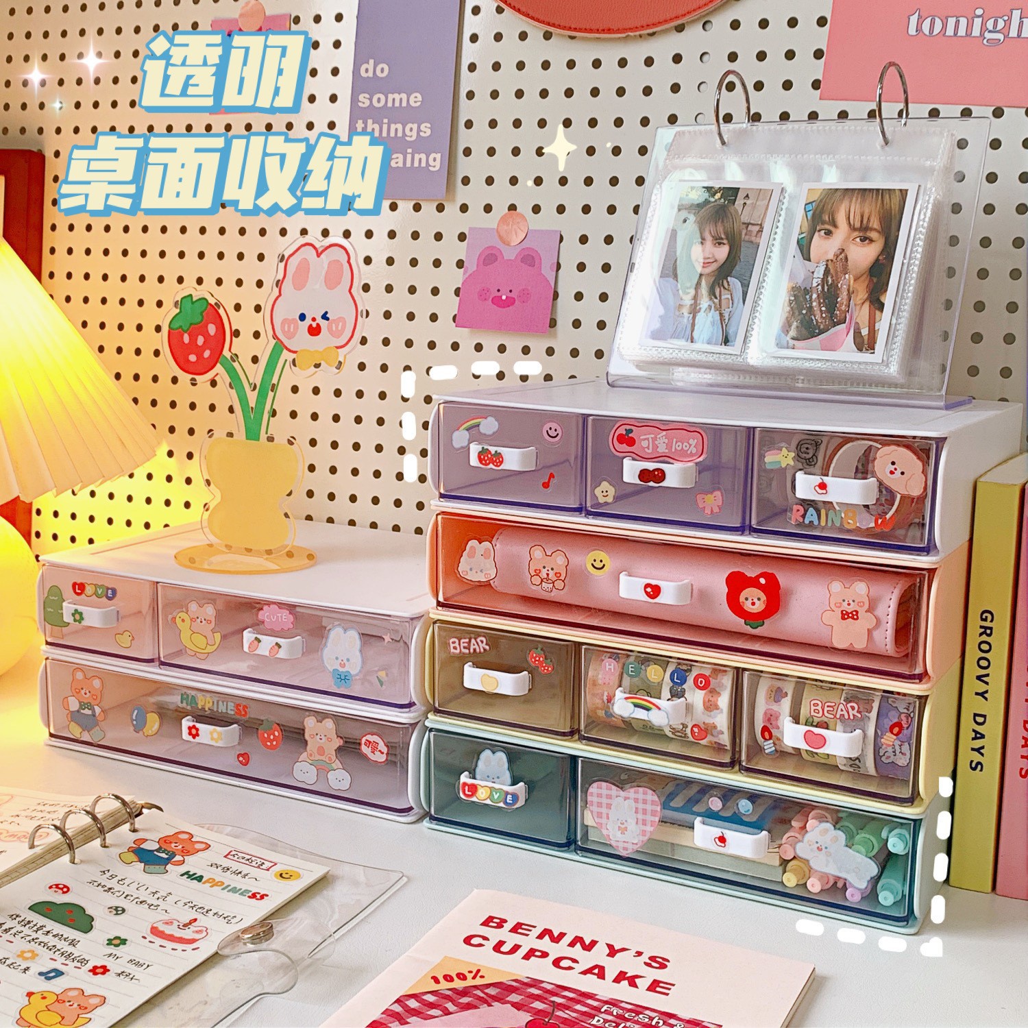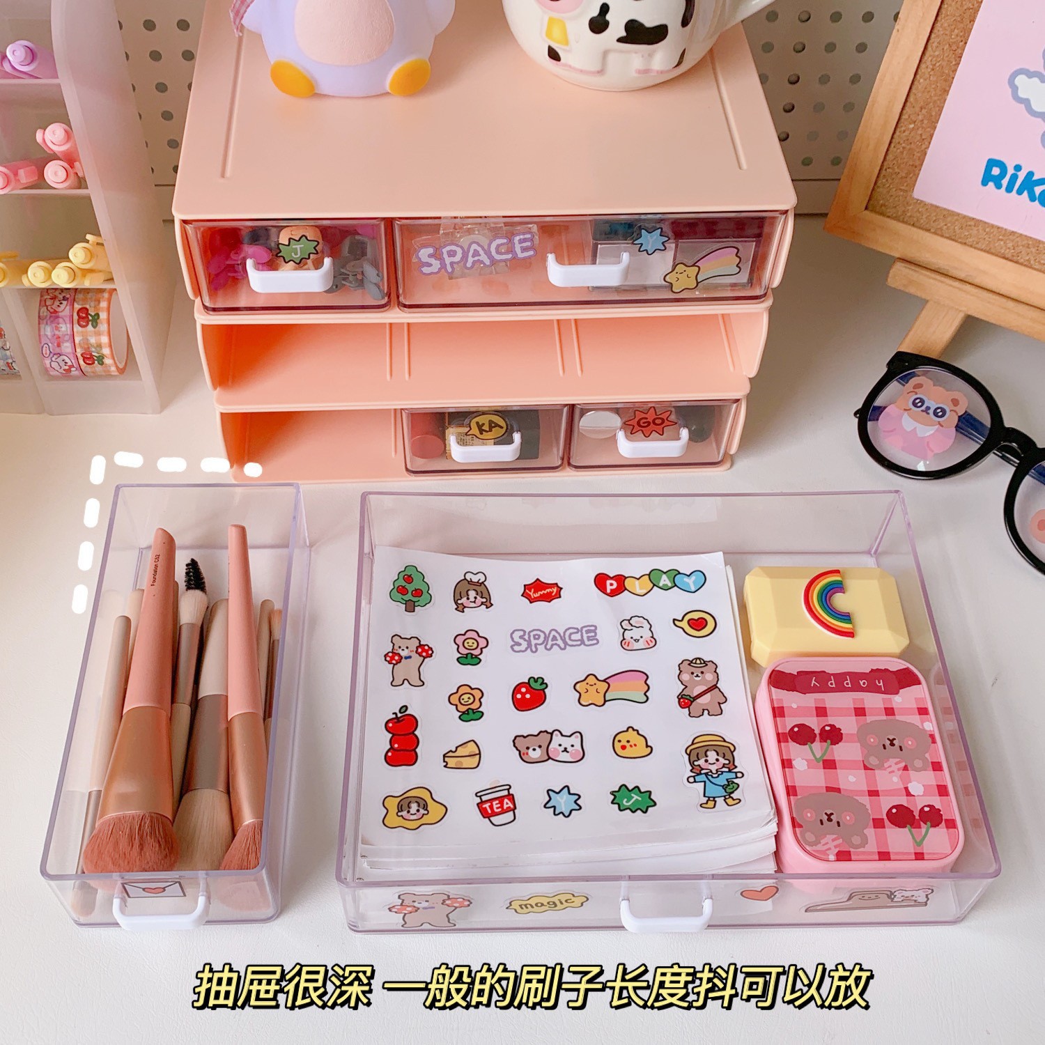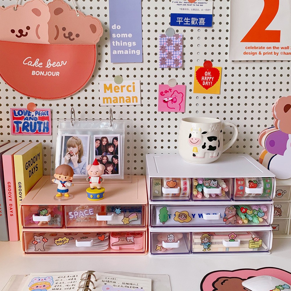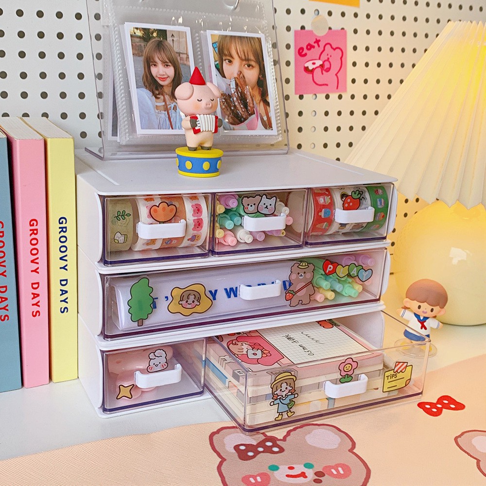 여자를 위한 한국식 유럽식 심플한 데스크탑 수납함, 여러 칸이 있는 서랍형 소품, 고무줄, 머리끈, 다기능