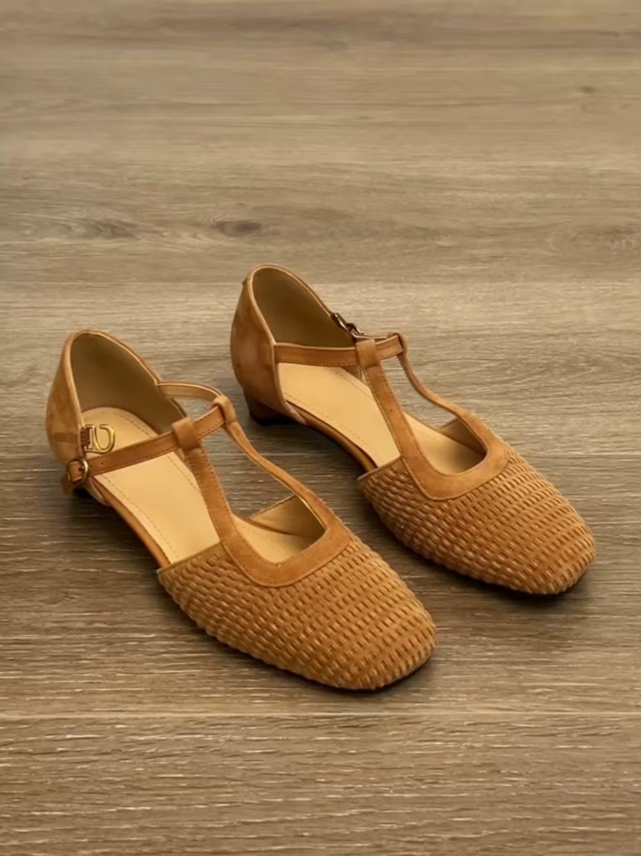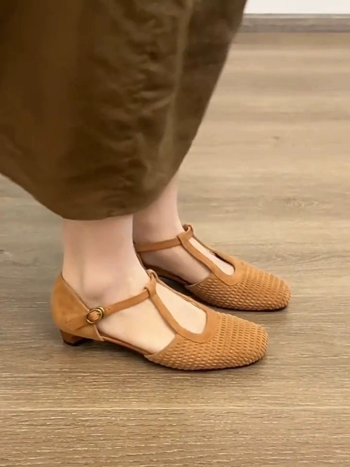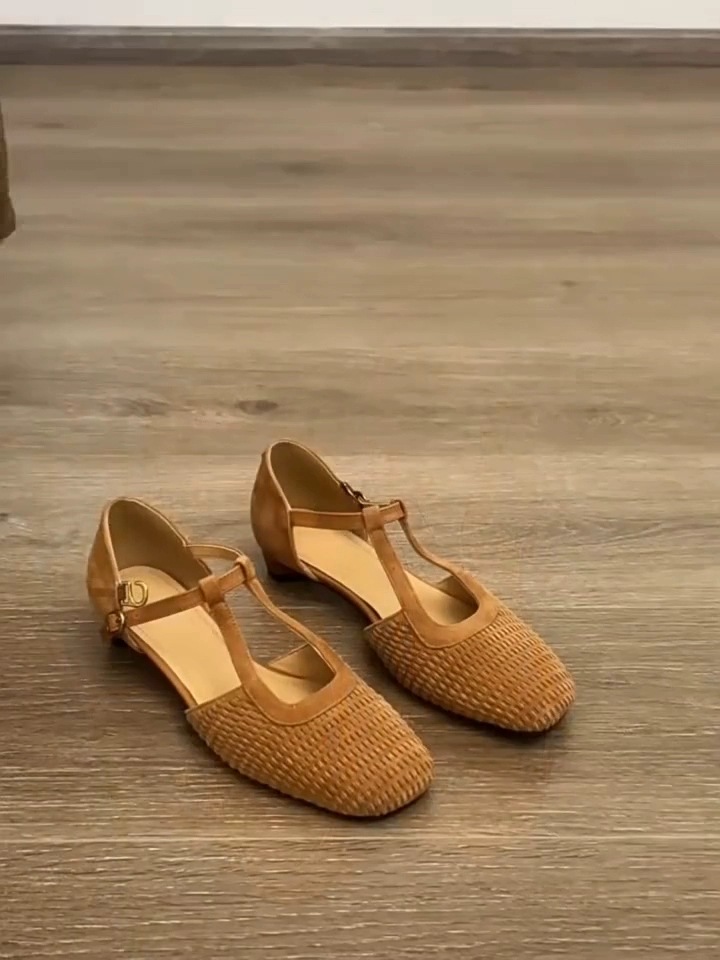 여성을 위한 복고풍 직조 아름다운 로마 샌들 2025 새로운 여름 겉옷 중공 메리 제인 두꺼운 굽 발가락 신발