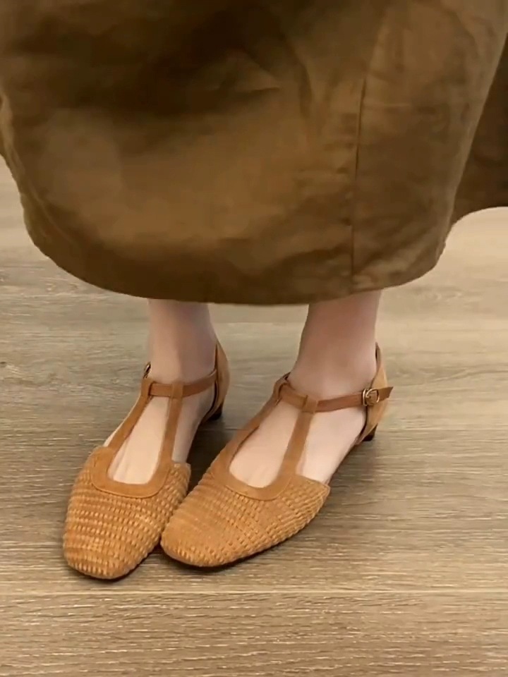 여성을 위한 복고풍 직조 아름다운 로마 샌들 2025 새로운 여름 겉옷 중공 메리 제인 두꺼운 굽 발가락 신발스토어 가기