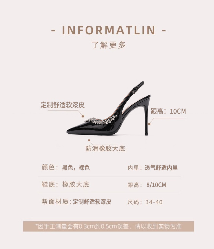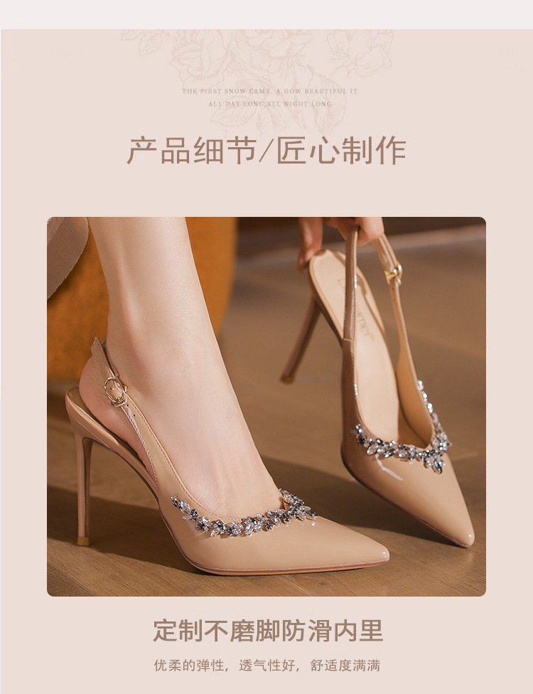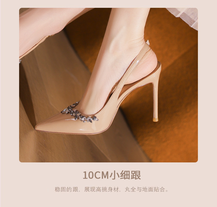 여성용 블랙 뉴 체인 라인스톤 하이힐, 스틸레토 힐, 포인티드 토, 프렌치 슈즈, 원라인 토캡 샌들, 연회스토어 가기