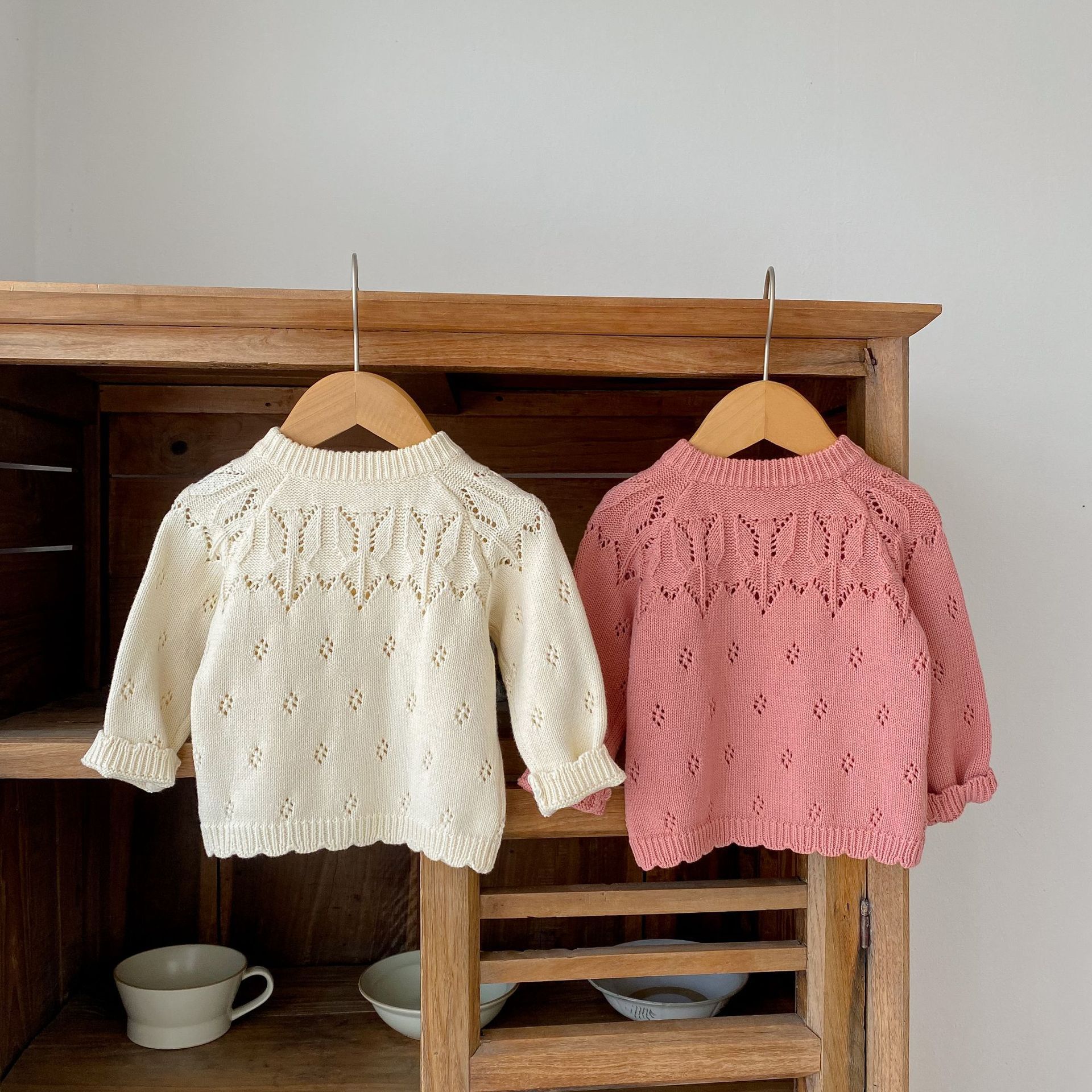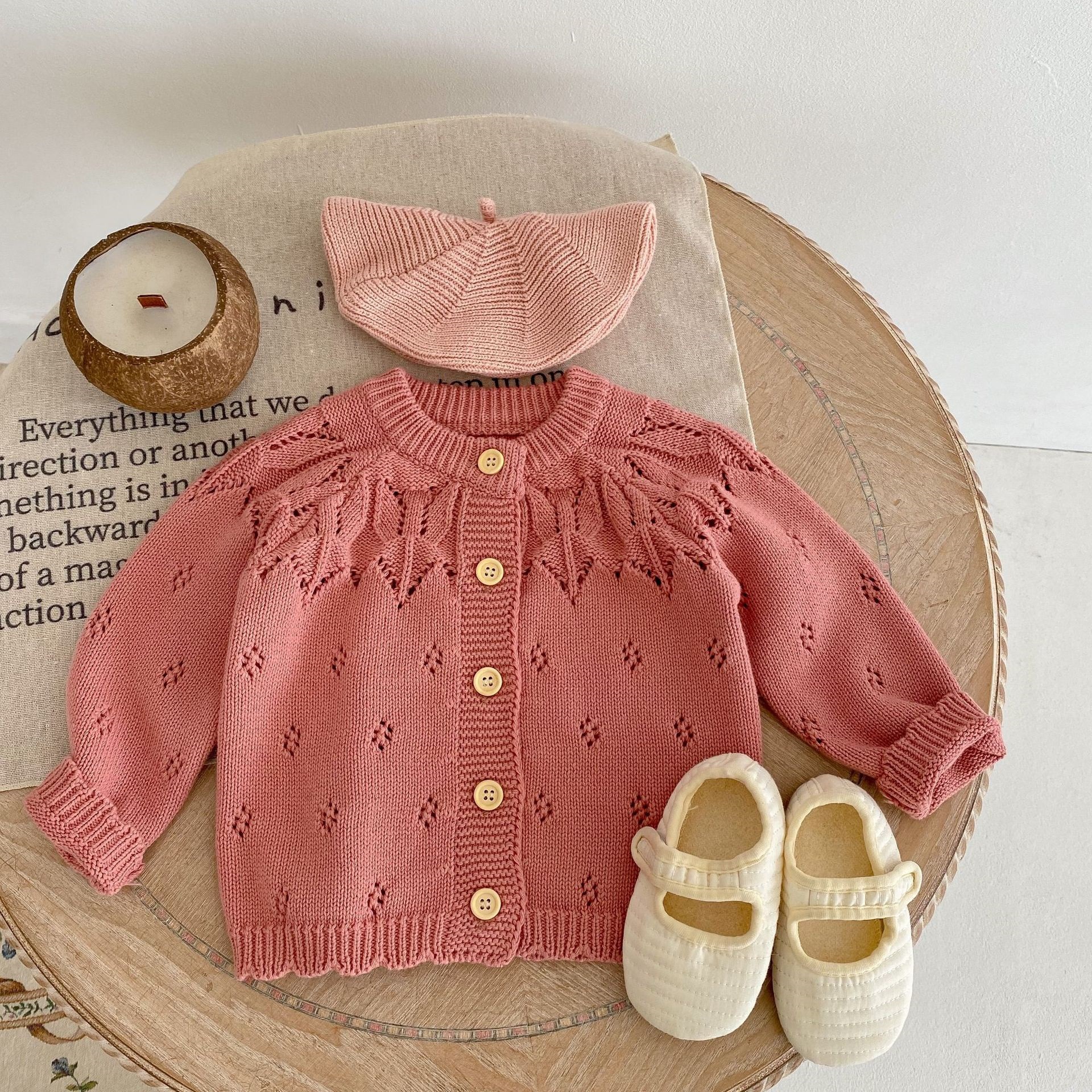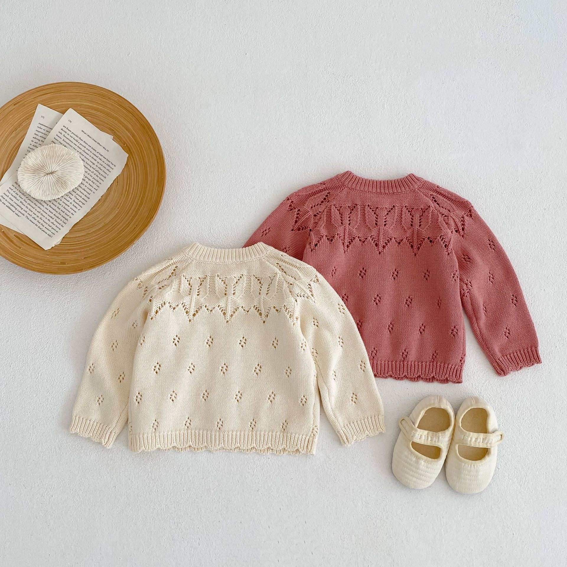 가을 의류 2025 면사 유아 다목적 긴팔 중공 니트 재킷 가을 베이비 자카드 스웨터 카디건