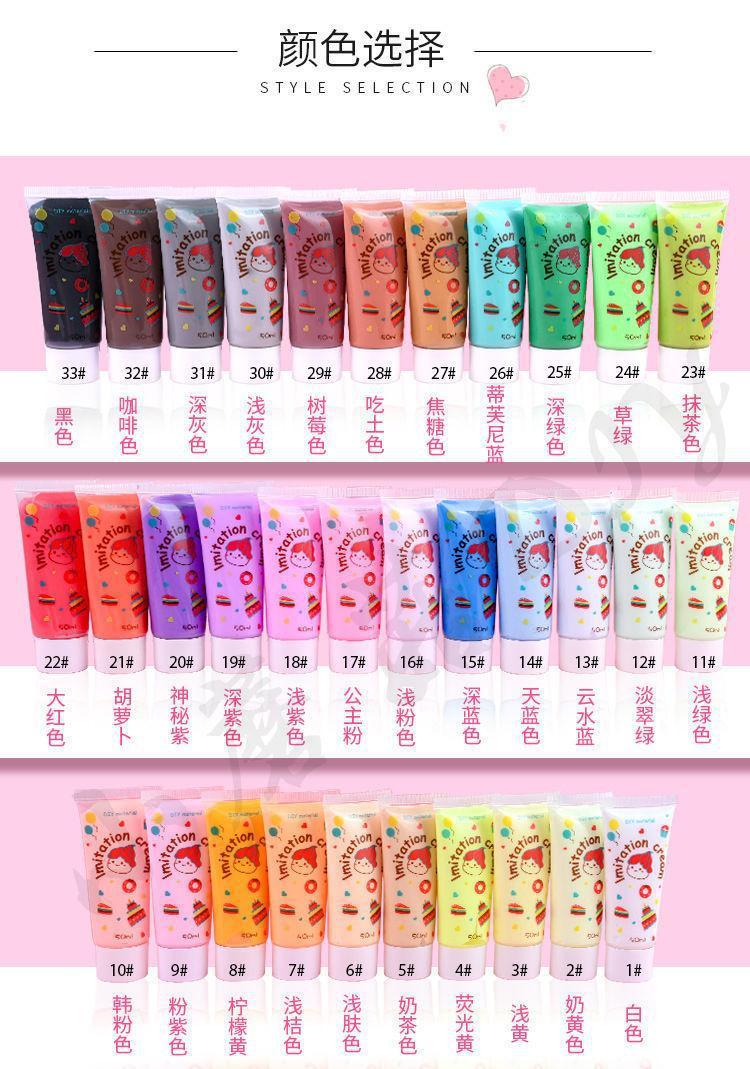 33 색상 부동액 50ml 시뮬레이션 크림 접착제 세트 diy 수제 휴대 전화 케이스 수제 카드 재료 패키지 도매