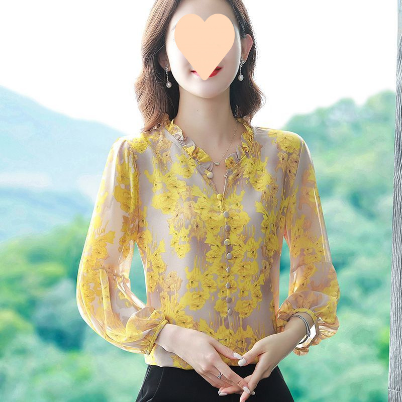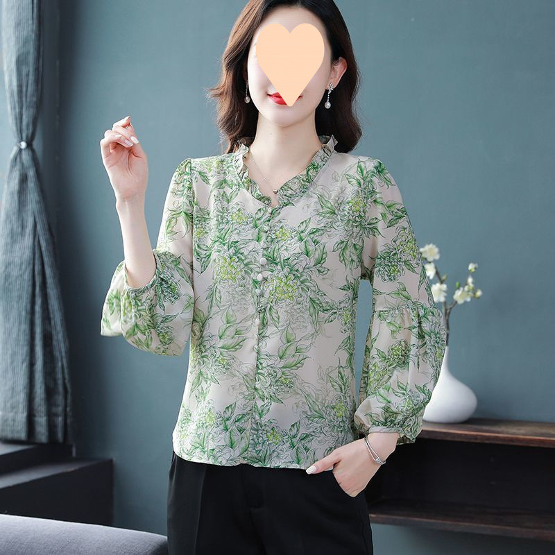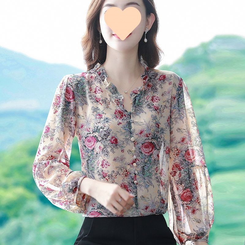 봄 신작 여성 루즈한 배 커버 쉬폰 셔츠 긴팔 어머니 젊은 여성 고급 셔츠 상의스토어 가기