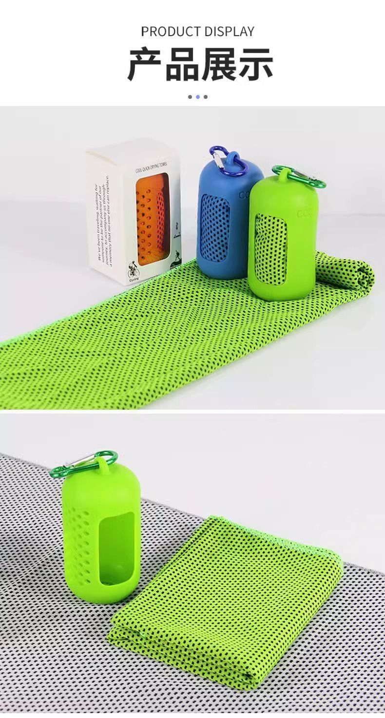 • 휴대용 실리콘 커버 쿨링 타월 - 블루 + 그린 + 실리콘 커버