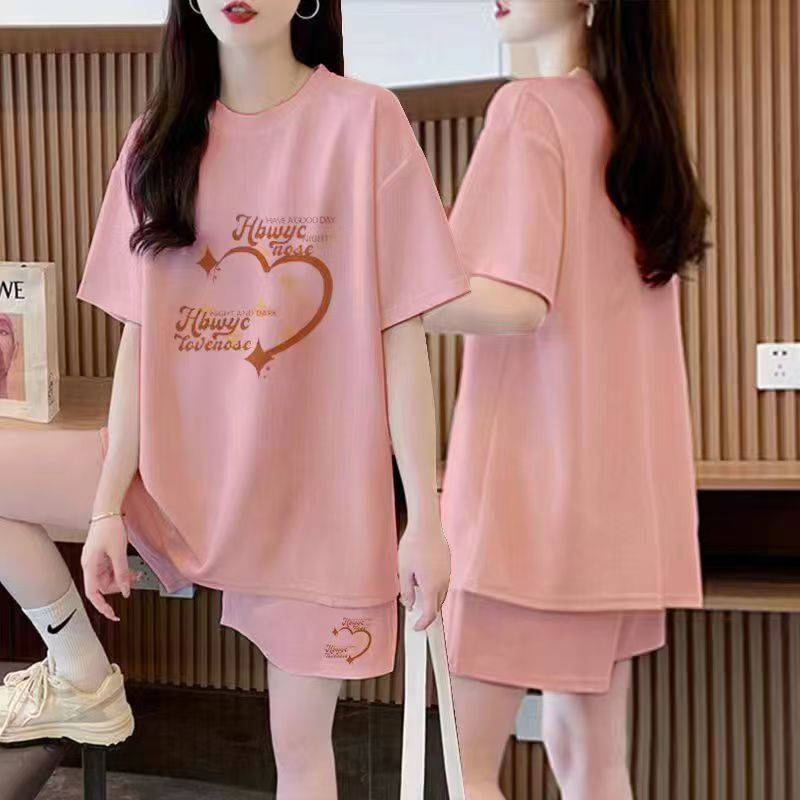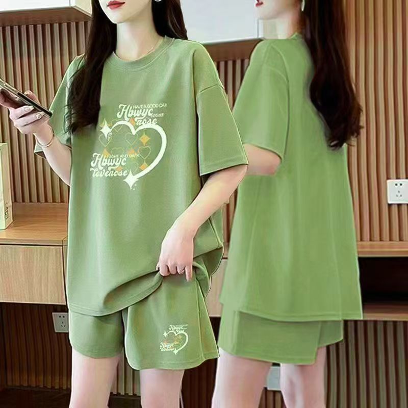 여성을위한 플러스 사이즈 여름 캐주얼 패션 반팔 반바지 투피스 세트 2025 새로운 뚱뚱하고 얇은 통기성 양복