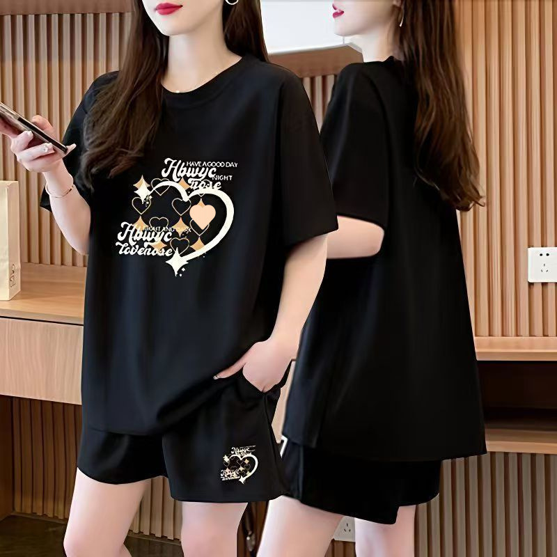 여성을위한 플러스 사이즈 여름 캐주얼 패션 반팔 반바지 투피스 세트 2025 새로운 뚱뚱하고 얇은 통기성 양복스토어 가기