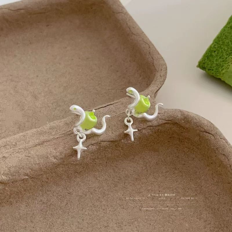 봄 새로운 틈새 디자인 사과와 뱀 귀걸이, 패셔너블하고 달콤하고 고급스럽고 고급스러운 귀걸이, 여성용 귀걸이 및 액세서리스토어 가기