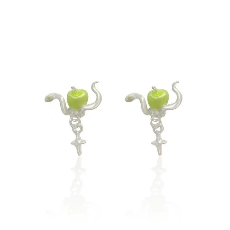 봄 새로운 틈새 디자인 사과와 뱀 귀걸이, 패셔너블하고 달콤하고 고급스럽고 고급스러운 귀걸이, 여성용 귀걸이 및 액세서리
