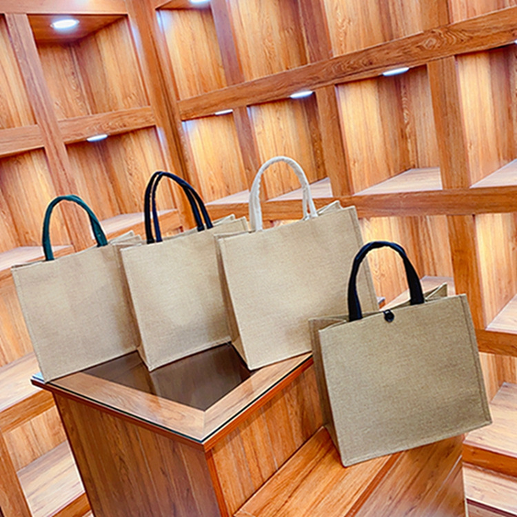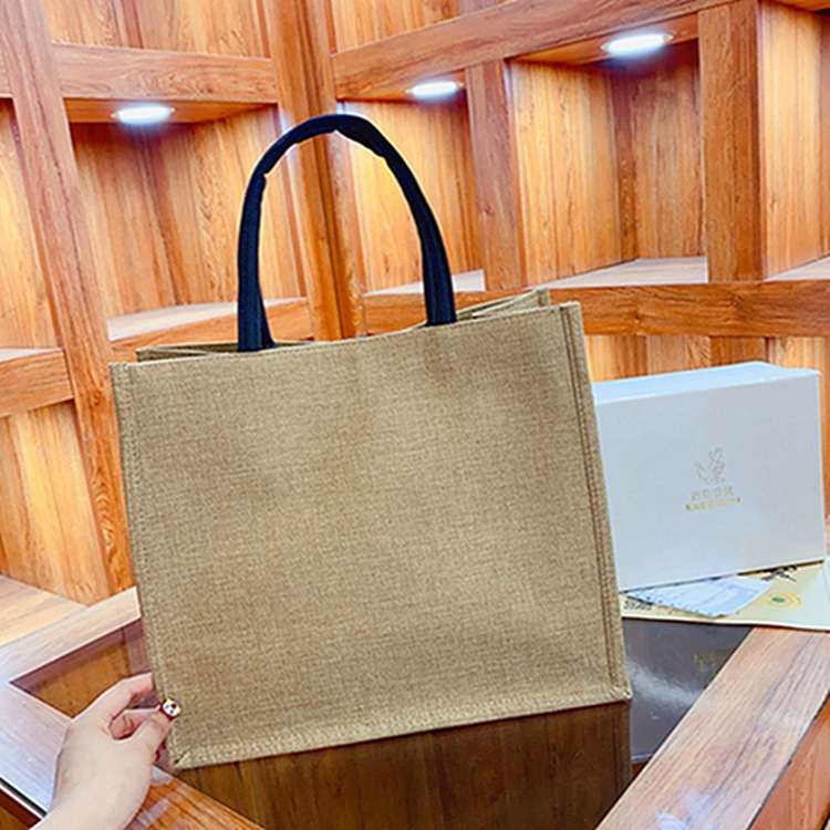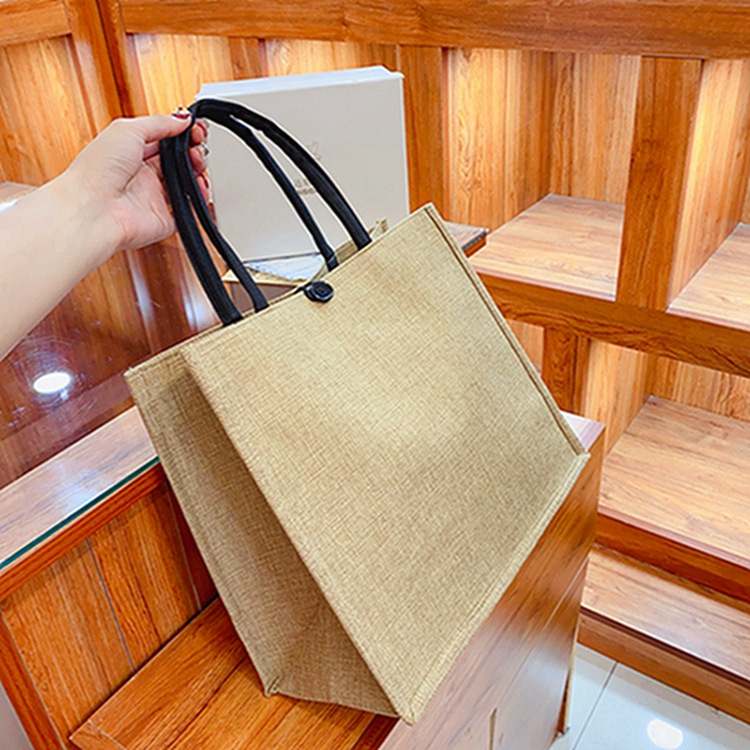 라이트 플레이트 솔리드 컬러 린넨 백 크로스보더 코튼 린넨 핸드백은 로고를 디자인하고 인쇄할 수 있습니다. 핸드 휴대용 린넨 백 통근 토트 백스토어 가기
