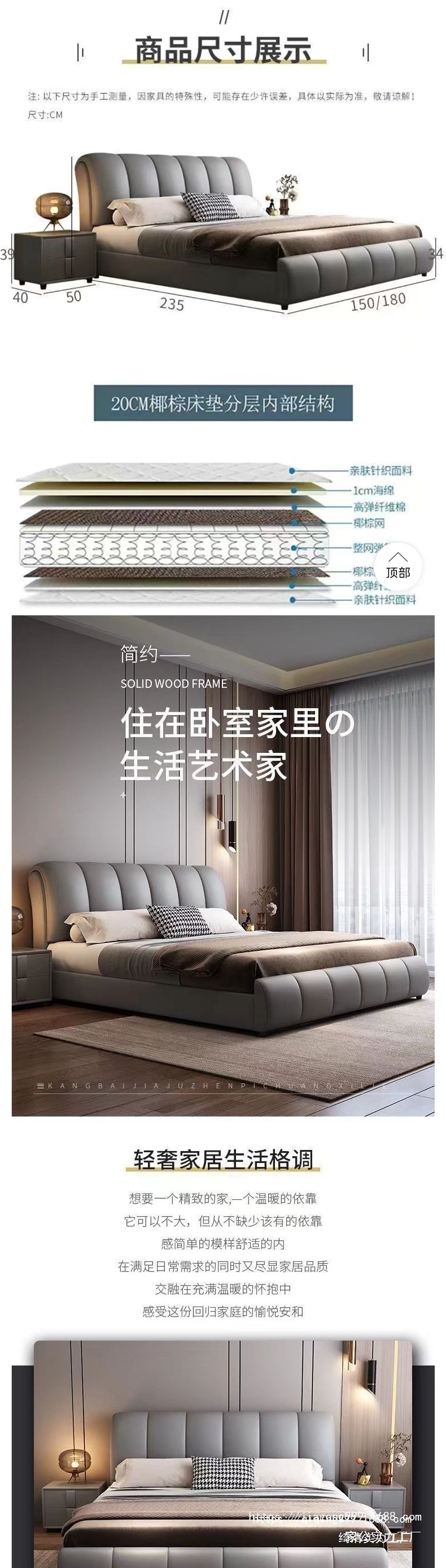 • 가죽 침대 + 9D 라텍스 매트 + 더블 캐비닛