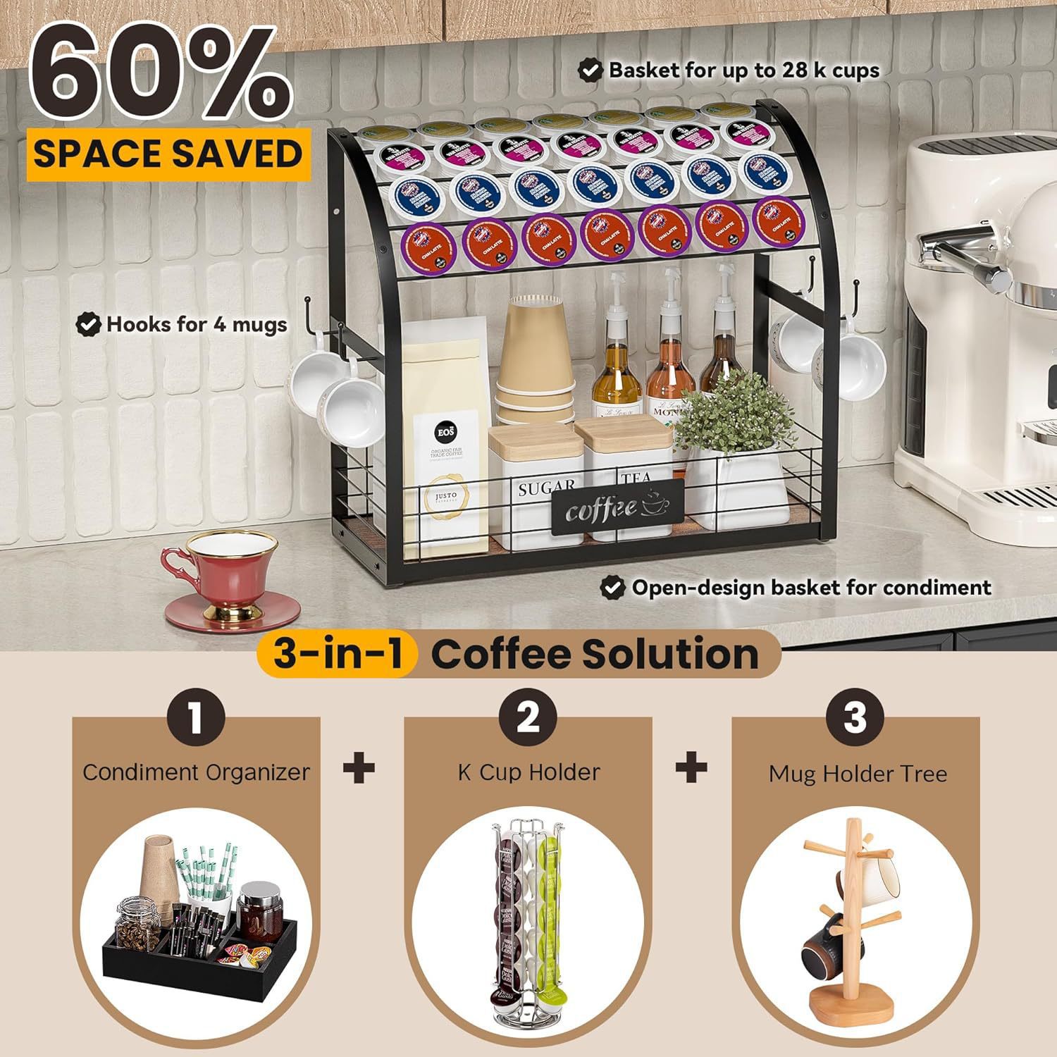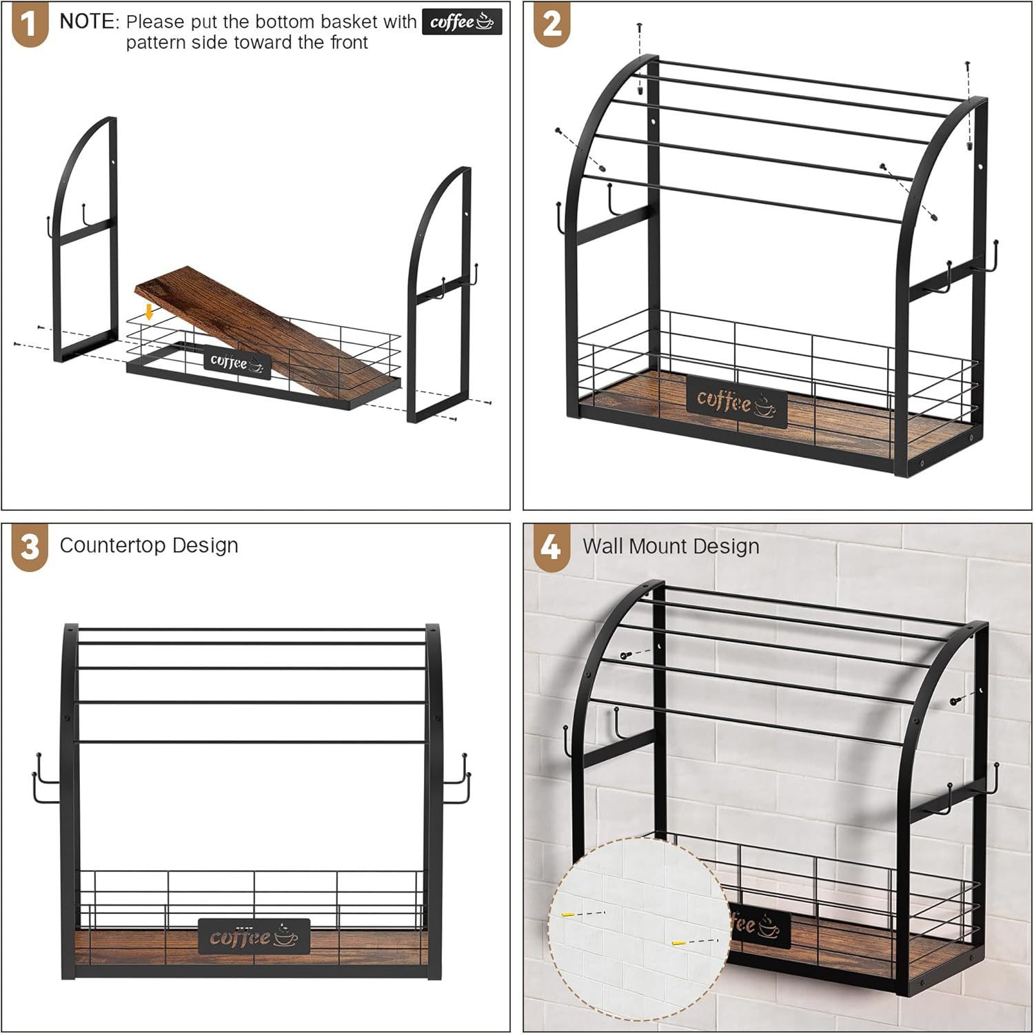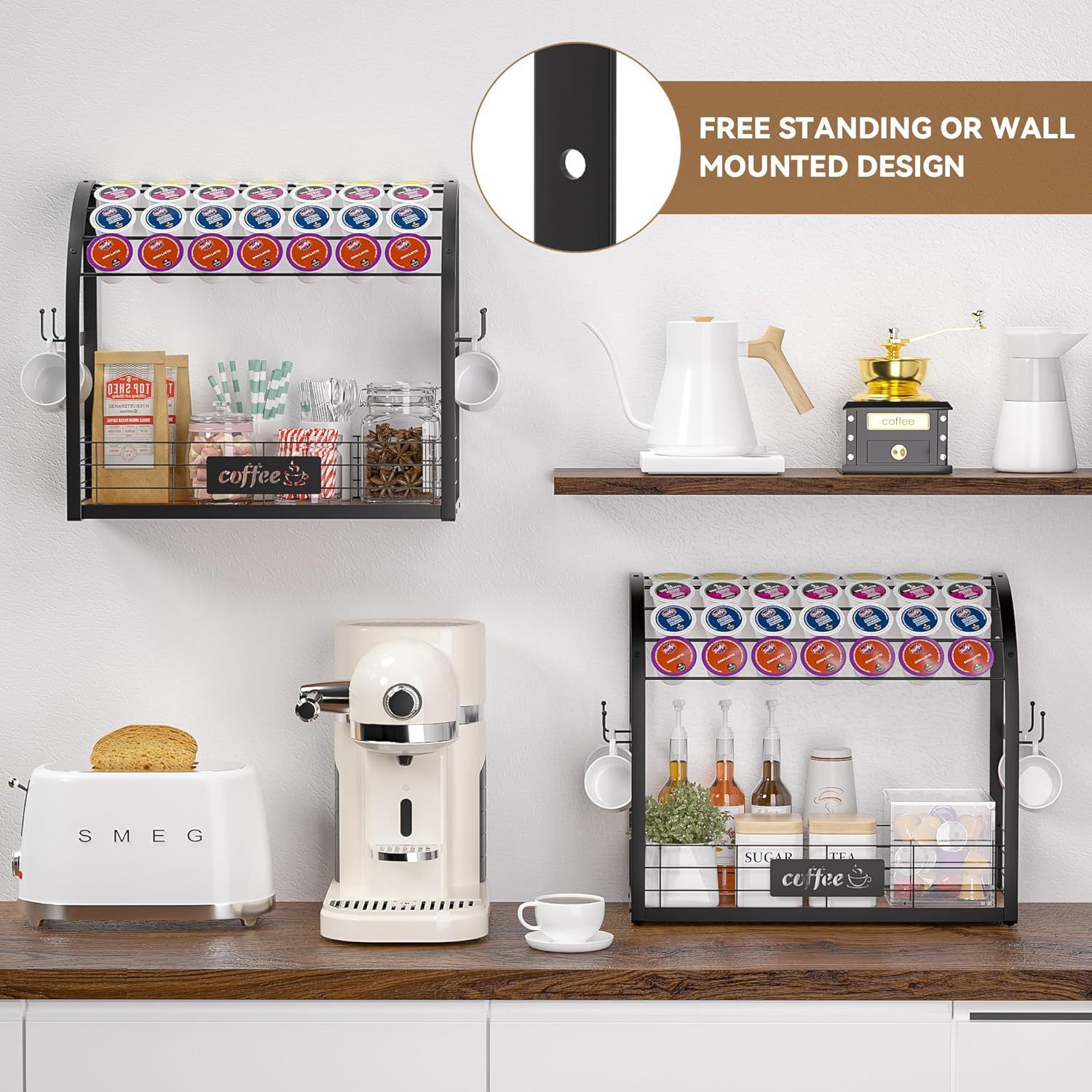 다기능 데스크탑 교수형 커피 머신 디스플레이 테이블 홈 워터 바 커피 캡슐 보관 커피 컵 보관 랙
