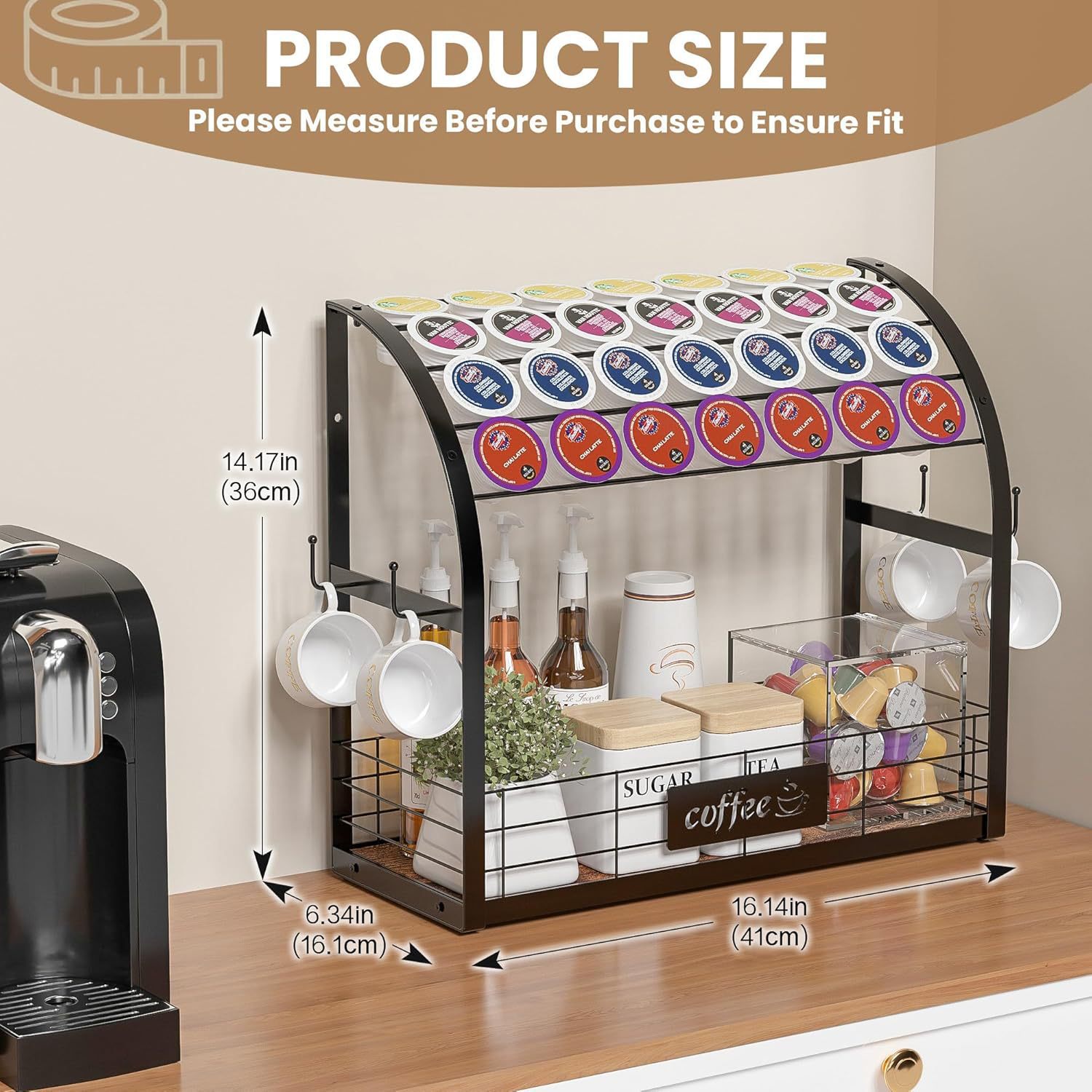 다기능 데스크탑 교수형 커피 머신 디스플레이 테이블 홈 워터 바 커피 캡슐 보관 커피 컵 보관 랙스토어 가기