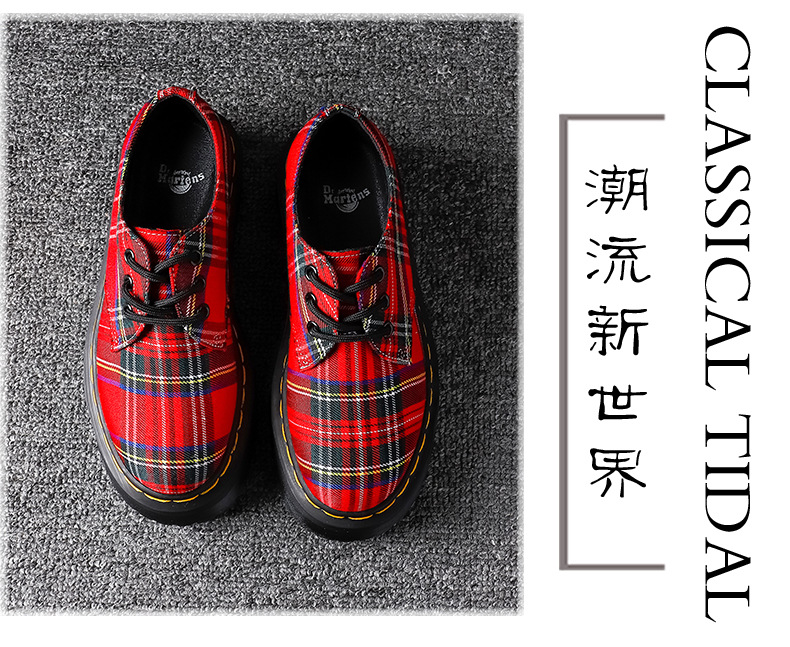 1461 여성용 두꺼운 밑창 3홀 작은 가죽 신발 로우 타트 패턴 패브릭 트렌디 라운드 투 커플 캐주얼 플랫폼 밑창 짧은 부츠스토어 가기
