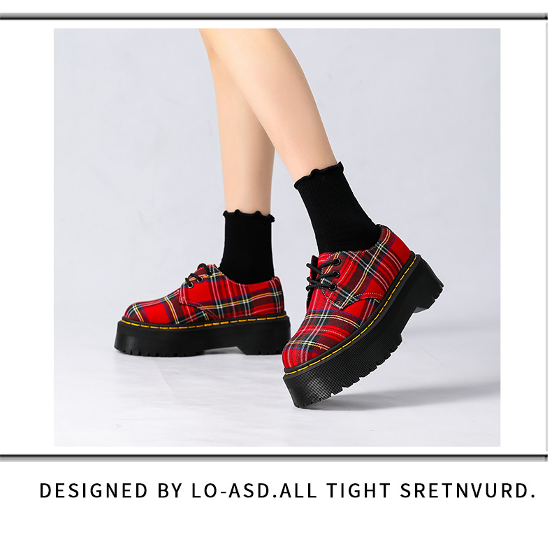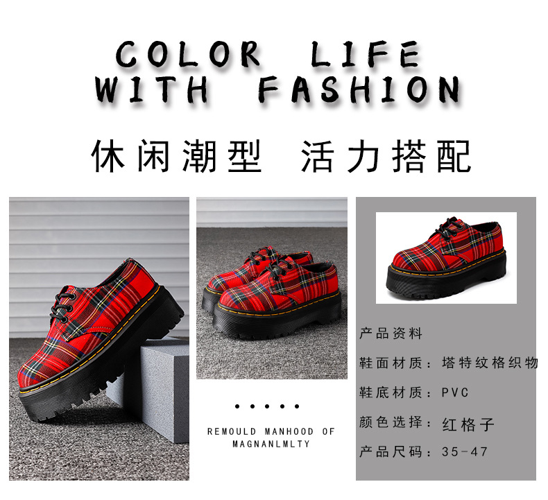 1461 여성용 두꺼운 밑창 3홀 작은 가죽 신발 로우 타트 패턴 패브릭 트렌디 라운드 투 커플 캐주얼 플랫폼 밑창 짧은 부츠