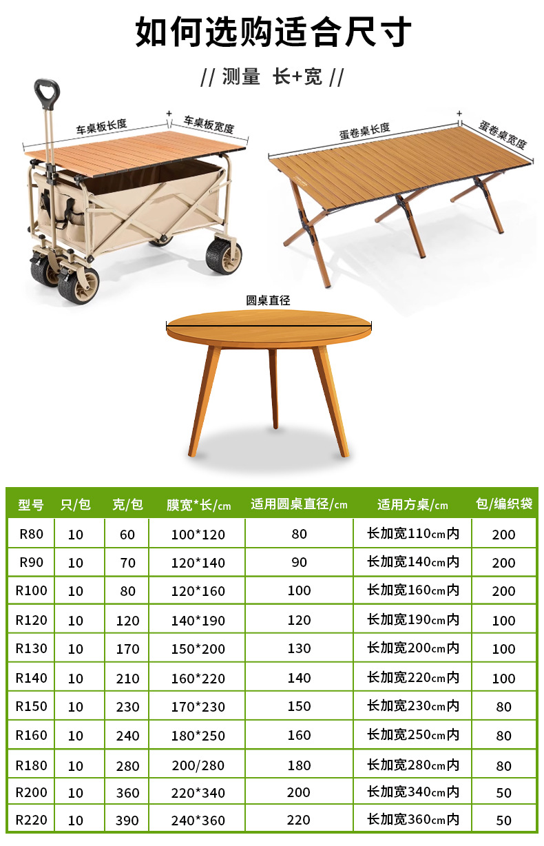 • 흰색 및 투명 [10 스트립] [R100] 적용 가능: 직경 1m 원형 테이블丨 길이 및 너비 1.6m 정사각형 테이블